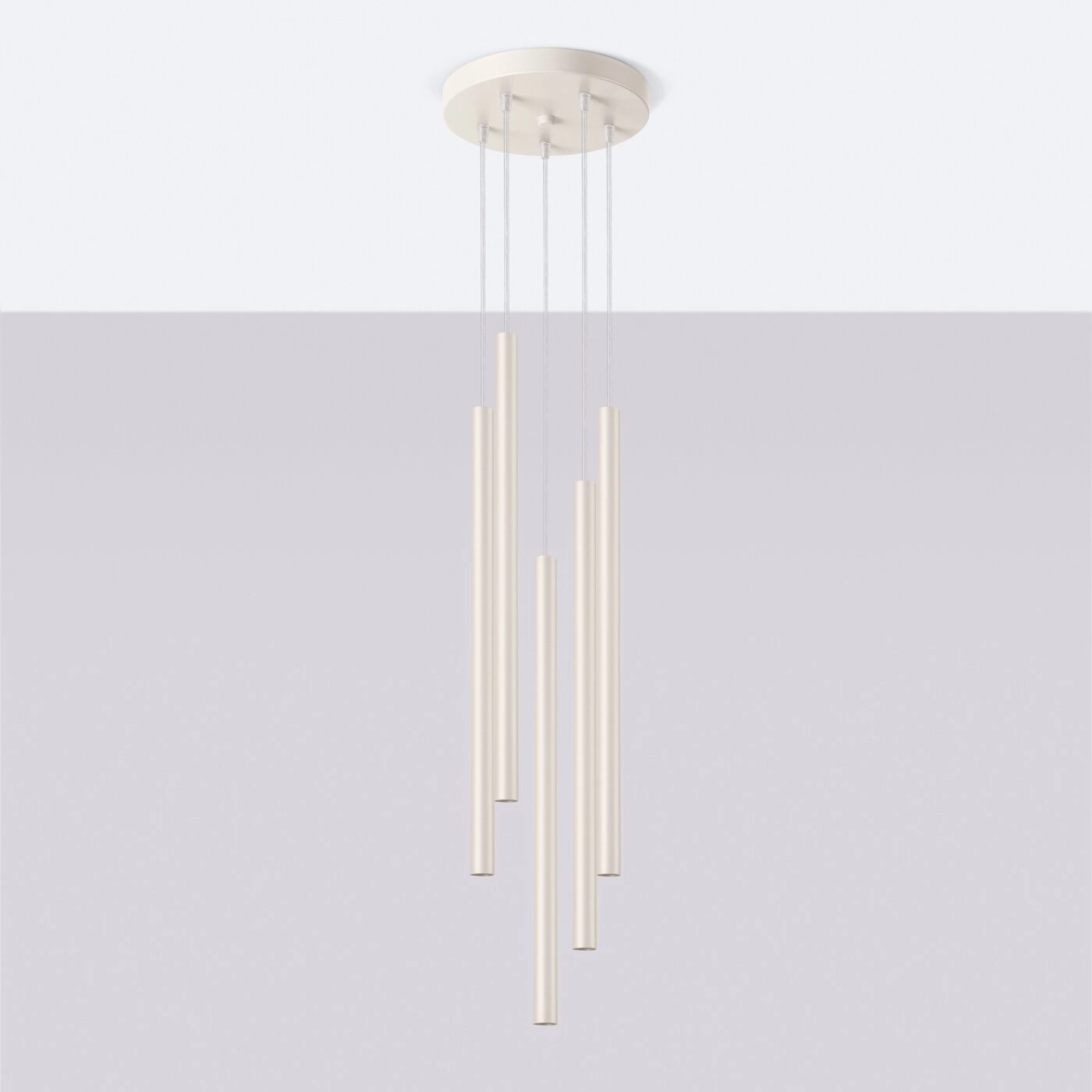 Díky plynule nastavitelné výšce (až do 104 cm) lze závěsné svítidlo Pastelo 5P přesně přizpůsobit vašim potřebám. Snadno jej umístíte nad jídelní stůl, kuchyňský ostrůvek nebo do středu obývacího pokoje a vytvoříte tak ideální podmínky pro společné chvíle, posezení i odpočinek. Průhledný kabel a béžová stropní krytka decentně doplňují celkový vzhled a nenarušují uspořádání interiéru.