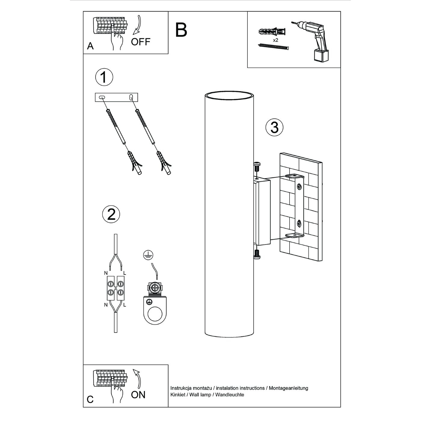 Dvojité nástěnné svítidlo Lagos 2 je vybaveno paticemi GU10 (max 10W), což poskytuje flexibilitu při výběru žárovek – můžete zvolit teplé světlo pro relaxaci nebo studené pro práci či čtení. Světlo směřované dolů umožňuje přesné osvětlení vybrané části stěny, obrazu nebo odpočinkové zóny. Kinkiet nevyžaduje složitou instalaci, takže rychle změníte vzhled místnosti bez zbytečných komplikací. Skvěle se uplatní také jako nástěnné svítidlo nad zrcadlo v ložnici nebo šatně.