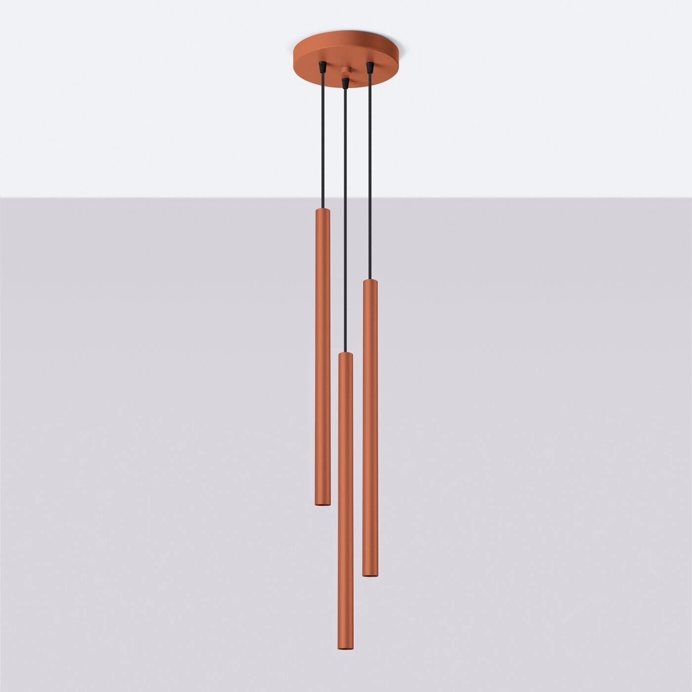 Moderní závěsné svítidlo Pastelo 3-bodové od značky SOLLUX LIGHTING je ideální volbou pro ty, kdo ocení výrazný design, funkčnost a volnost při zařizování interiéru. Model je vyroben z oceli v sytě červené barvě v odstínu terakoty a disponuje třemi samostatnými světelnými zdroji, přičemž výšku zavěšení lze nastavit až do 104 cm. Skvěle se hodí do obývacího pokoje, nad jídelní stůl nebo do kuchyně – všude tam, kde záleží nejen na osvětlení, ale také na efektním dekorativním prvku.