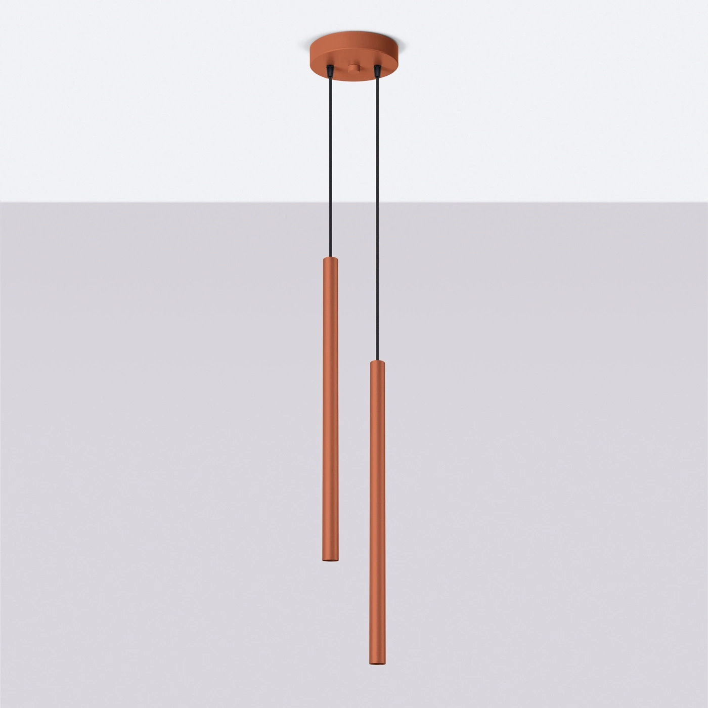 Závěsné svítidlo Pastelo 2 od značky SOLLUX LIGHTING je moderním řešením stropního osvětlení, které spojuje výrazný odstín červené (terracotta) s funkční možností nastavení výšky zavěšení. Vyrobeno z odolné oceli, s kompaktní šířkou 15 cm a maximální výškou 114 cm, skvěle se hodí jako lustr nad jídelní stůl, závěsné svítidlo do obývacího pokoje nebo designový akcent do ložnice či pracovny. Dvojité světelné zdroje zajišťují rovnoměrné osvětlení a minimalistický tvar tubusů perfektně zapadá do moderních interiérů.
