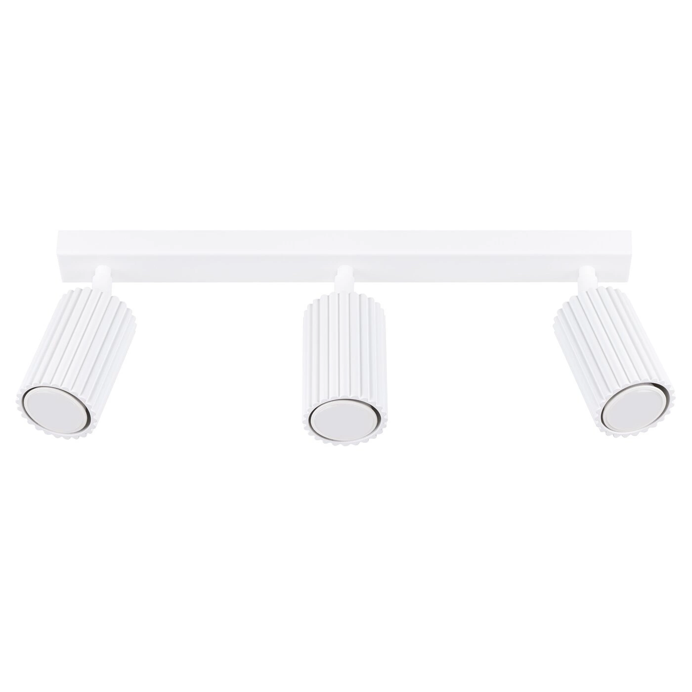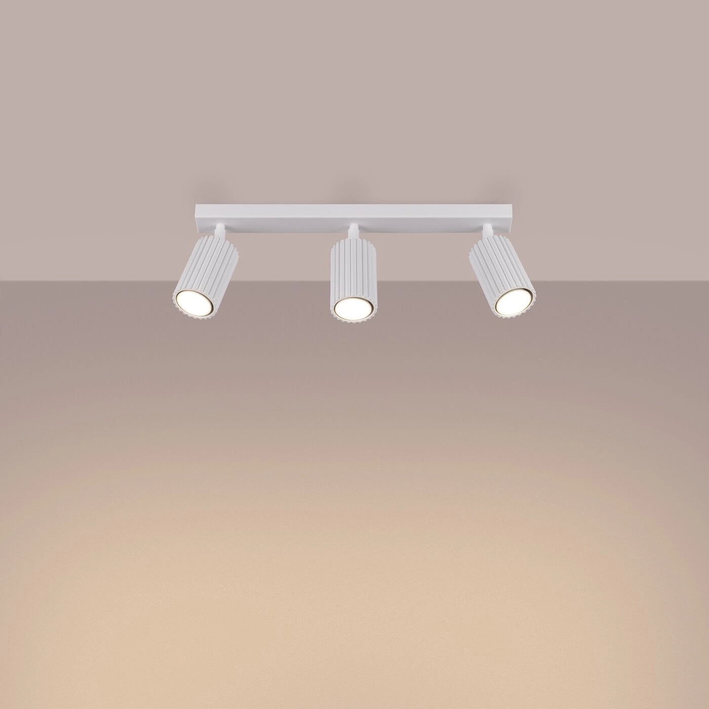 Bílý stropní plafon KARBON 3L od značky SOLLUX LIGHTING je minimalistické stropní svítidlo vyrobené z odolného hliníku, vybavené třemi nastavitelnými světelnými zdroji GU10. Jeho štíhlý tvar (výška 16,5 cm, šířka 6,5 cm a délka 45 cm) a matný bílý povrch zajišťují, že perfektně zapadne do moderních i nadčasových interiérů obývacího pokoje, ložnice, předsíně nebo pracovny. Možnost individuálního nastavení směru světla umožňuje snadno přizpůsobit osvětlení aktuálním potřebám domácnosti.