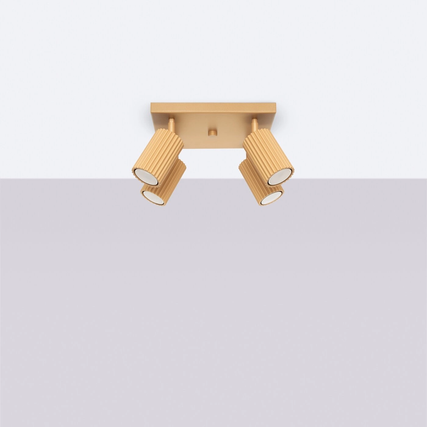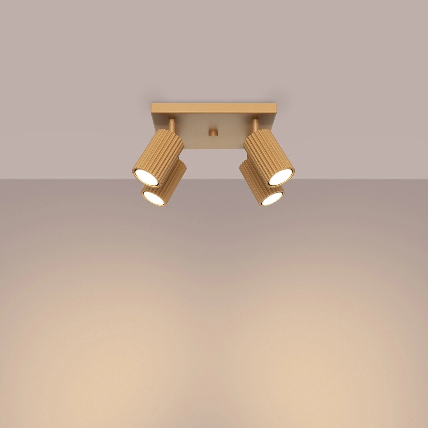 Stropní svítidlo glamour KARBON 4 zlaté od značky SOLLUX je designové osvětlení vyrobené z odolného hliníku, ideální pro obývací pokoj i ložnici. Tento model vyniká čtyřmi pohyblivými stínidly, která umožňují přesné nasměrování světla tam, kde ho právě potřebujete. Kompaktní rozměry (šířka a hloubka 25 cm, výška 16,5 cm) zajišťují, že se plafon skvěle hodí jak do prostorných, tak i menších místností, a zlatá barva dodává interiéru výjimečný a luxusní vzhled.