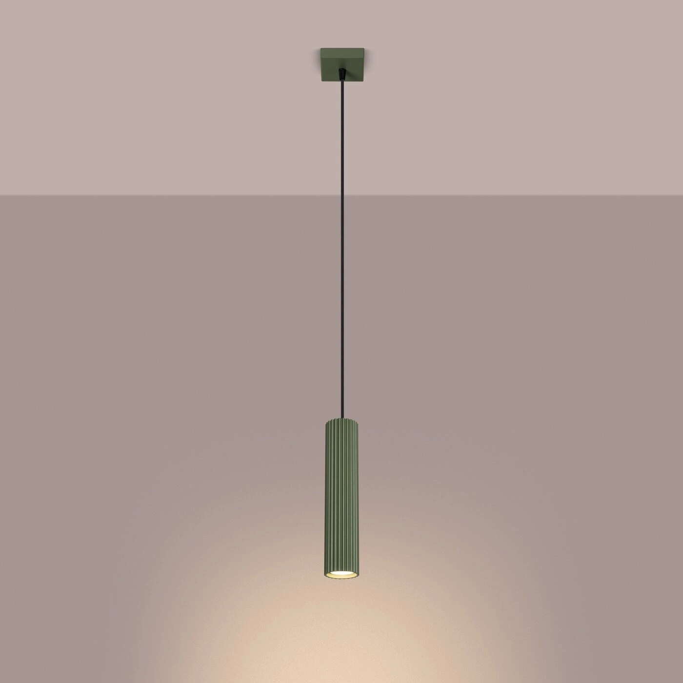 Výjimečný design závěsného svítidla Karbon 1 v podobě elegantní tuby podtrhne charakter každého interiéru v minimalistickém nebo glamour stylu. Olivově zelená barva přináší do prostoru svěžest a originální barevný akcent, zároveň však zůstává dostatečně decentní, aby ladila s dalšími prvky zařízení. Štíhlá konstrukce (8 × 8 cm) je ideální jak jako samostatný lustr do obývacího pokoje, tak i jako závěsné světlo nad stůl nebo kuchyňský ostrůvek.