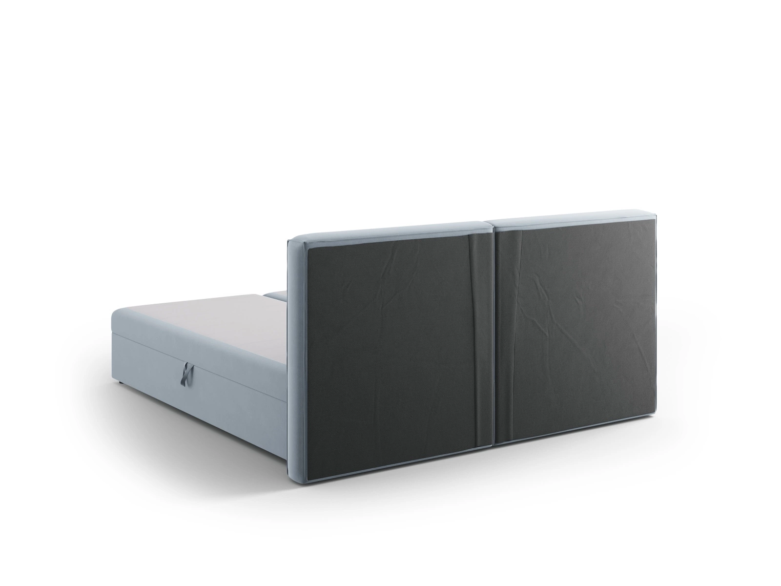 Postel Jodie je moderní čalouněná postel 180x200 cm v výrazné modré barvě, vyrobená z měkkého sametu a masivního borovicového dřeva – ideální volba do ložnice ve stylu glamour. Zaujme sametovým povrchem, vysokým čelem a praktickým úložným prostorem na lůžkoviny, který nabízí další místo na uskladnění. Díky pevné konstrukci a elegantnímu designu je tato dvoulůžková postel jedinečnou ozdobou každé moderní ložnice.