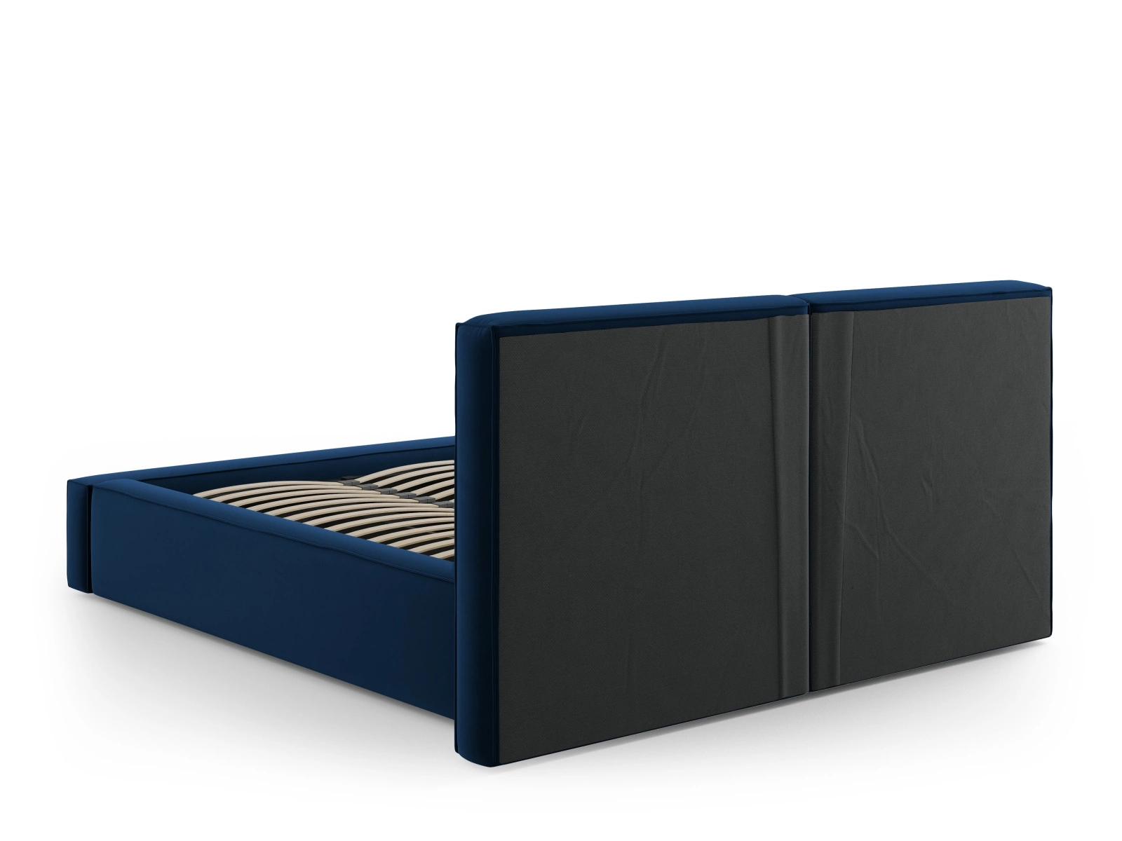 Čalouněná postel Jodie II 140x200 upoutá pozornost svými čistými liniemi a jemným dekorativním prošíváním na čele. Modrá sametová látka dodává interiéru výrazný charakter a zároveň navozuje pocit klidu a relaxace. Je to ideální volba pro ty, kteří ocení unikátní detaily v zařízení ložnice a maximální pohodlí. Díky nízkým nožkám (2,5 cm) působí postel elegantně a stabilně, perfektně se hodí k moderním doplňkům ve stylu glamour.