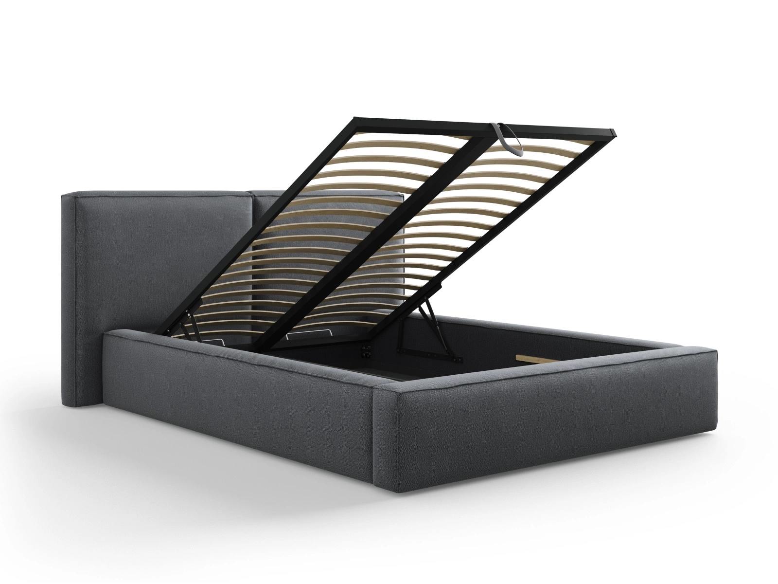 Postel Jodie II disponuje velkým úložným prostorem pod roštem, díky čemuž snadno uschováte lůžkoviny, deky nebo sezónní textilie. Toto praktické řešení vám pomůže lépe organizovat prostor a udržet v ložnici pořádek. Pohodlný přístup do úložného prostoru zajišťuje maximální komfort při každodenním používání postele.