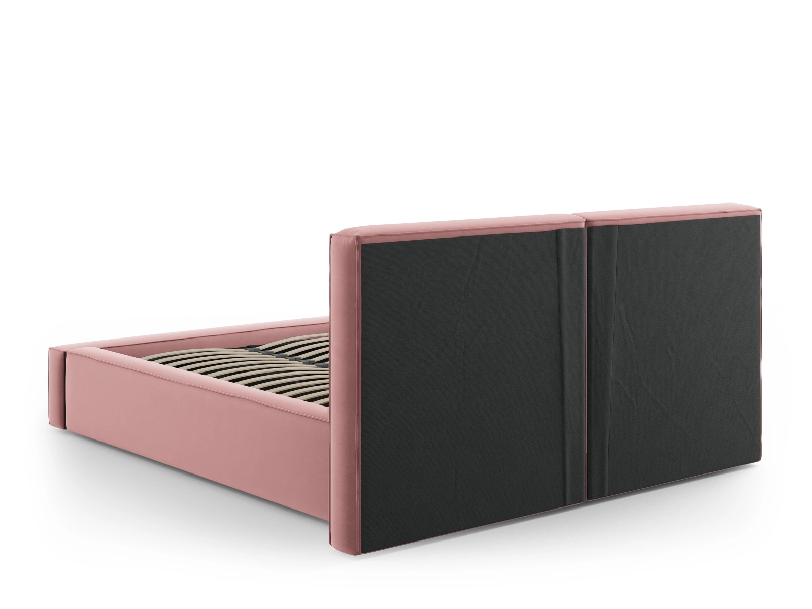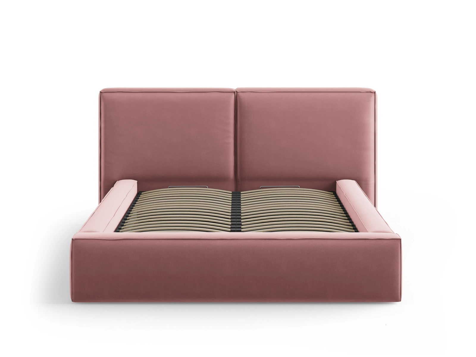 Čalouněná sametová postel Jodie II růžová 160x200 s úložným prostorem do ložnice