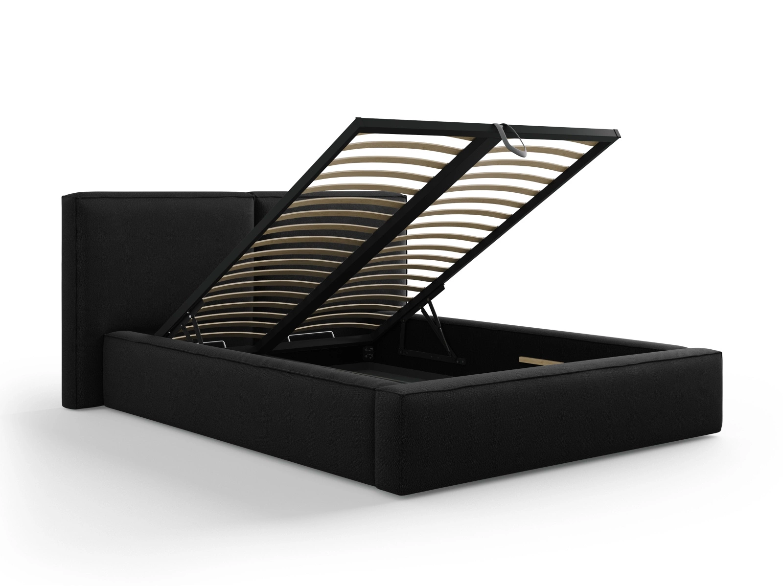 Postel Jodie II je navržena pro milovníky vytříbeného designu a praktických řešení. Čalounění v černém sametu dodává interiéru exkluzivní atmosféru a podtrhuje moderní glamour styl. Dekorativní prošívání na čele postele upoutá pozornost a vytváří jedinečnou atmosféru vhodnou k relaxaci po náročném dni. Tento model skvěle zapadne jak do manželské ložnice, tak do moderního bytu.