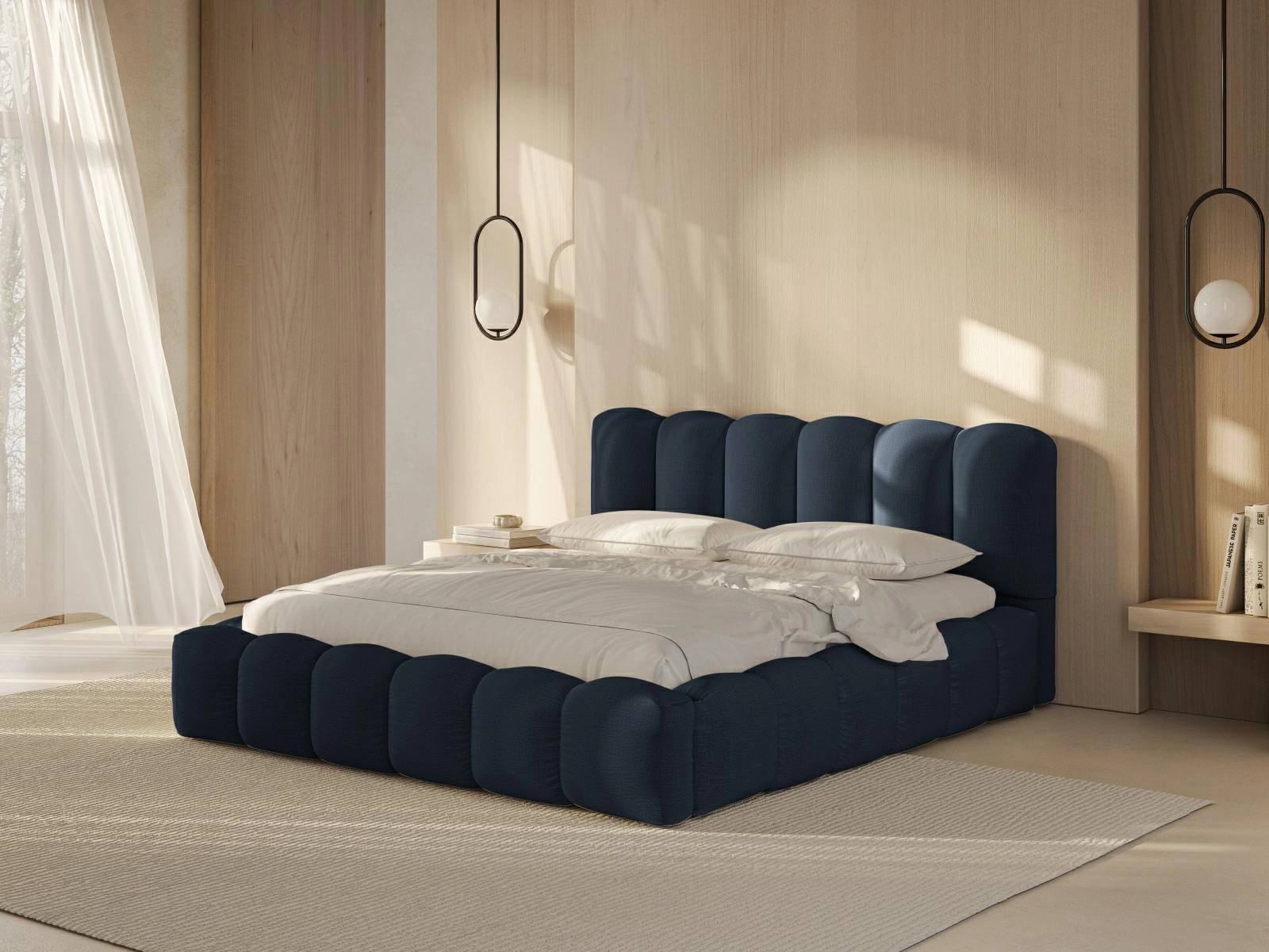 Výrazný modrý odstín postele Lupine vnese do vaší ložnice svěžest a moderní eleganci. Čalouněné provedení z látky typu Structured Fabric není jen designově atraktivní, ale také mimořádně příjemné na dotek, což zajišťuje komfort při každodenním používání. Široké čelo postele zdůrazňuje moderní charakter nábytku a poskytuje pohodlnou oporu při čtení nebo odpočinku.