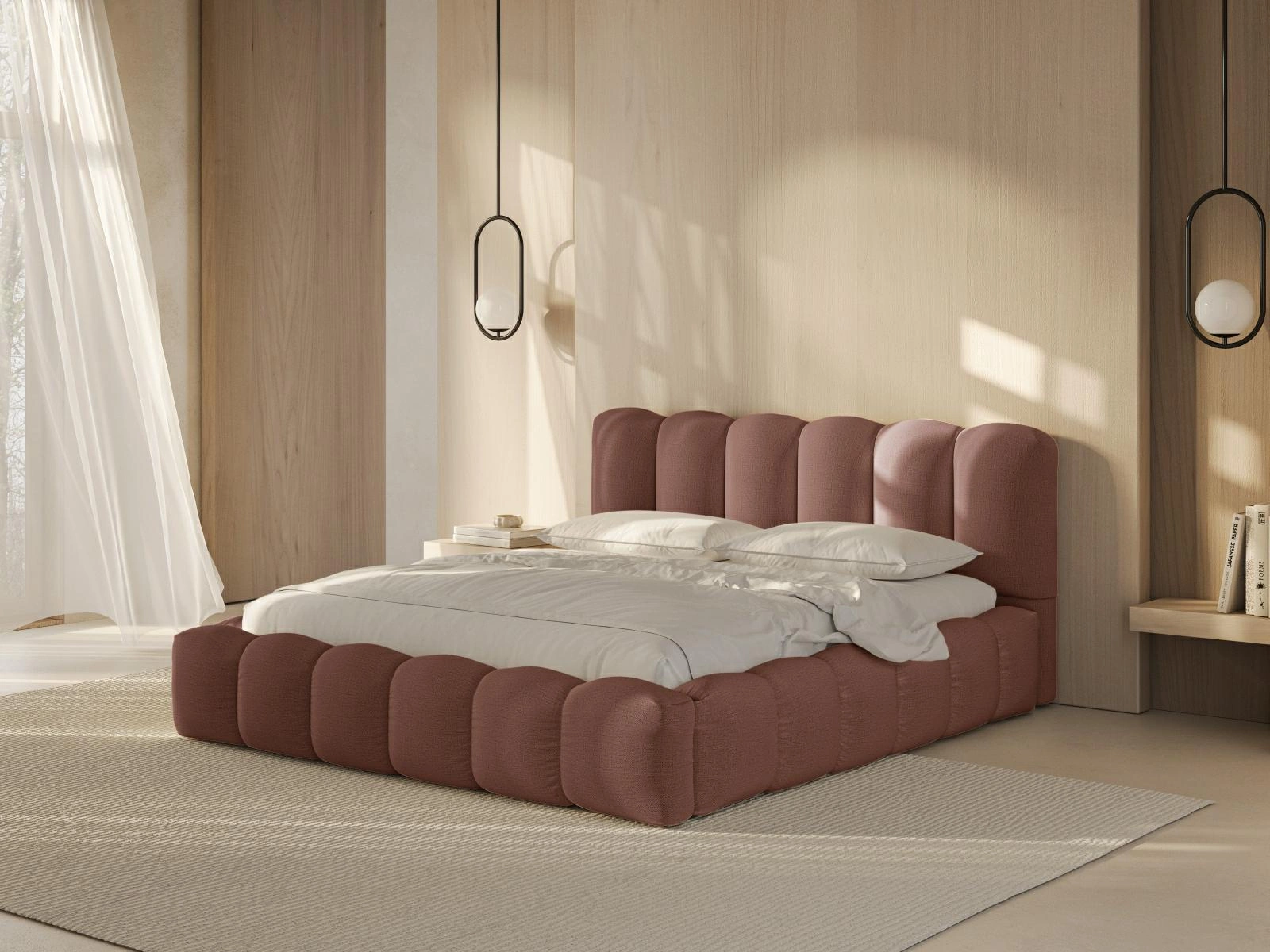 Postel Lupine není jen obyčejný kus nábytku – stává se středobodem vaší ložnice a dodává interiéru jedinečný charakter. Tmavě růžové čalounění z látky Structured Fabric je mimořádně příjemné na dotek a podtrhuje luxusní, ale zároveň moderní glamour vzhled. Vysoké, měkké čelo postele nejen zdobí, ale také poskytuje komfort při večerním čtení nebo sledování filmů.