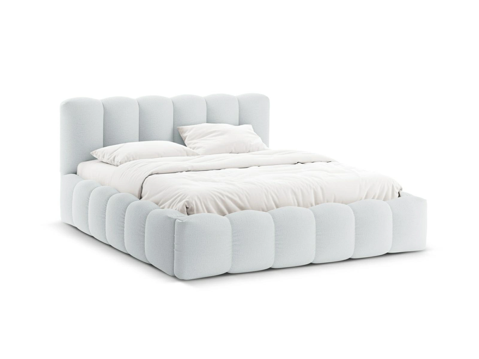 Čalouněná postel Lupine je dokončena látkou Structured Fabric v jemném světle šedém odstínu, který harmonicky ladí s moderními i glamour interiéry. Tento materiál je nejen měkký a příjemný na dotek, ale také snadno udržovatelný, takže postel si zachová svůj elegantní vzhled dlouhodobě. Nízké nožky (2,5 cm) podtrhují minimalistický a exkluzivní charakter nábytku.
