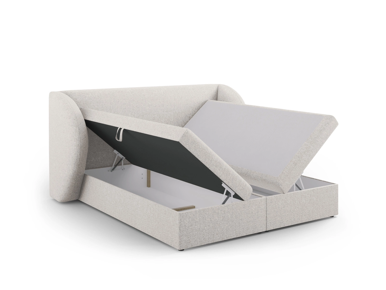 Čalouněná postel Miley je vybavena prostorným úložným prostorem na lůžkoviny, takže snadno uschováte deky, polštáře i sezónní textilie. Otevírání úložného boxu je pohodlné a bezpečné, což oceníte při každodenním používání. Součástí postele je také pevný rošt, který můžete použít ihned po sestavení nábytku.