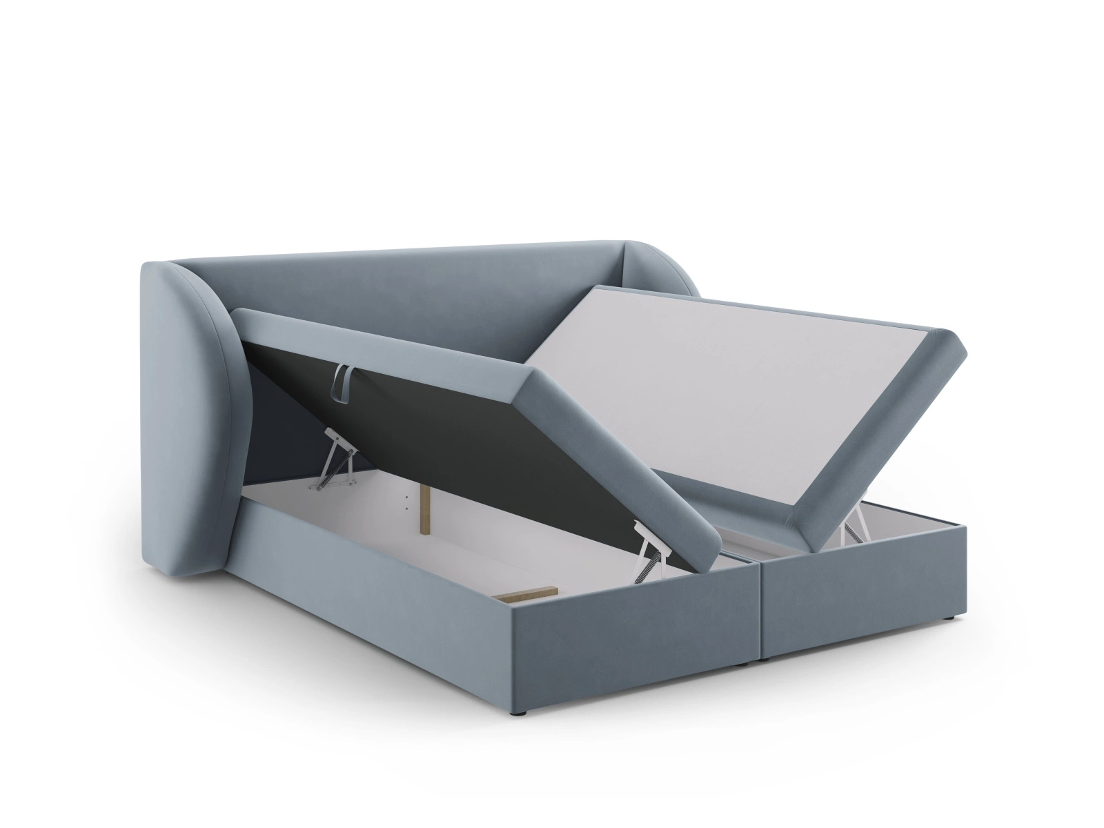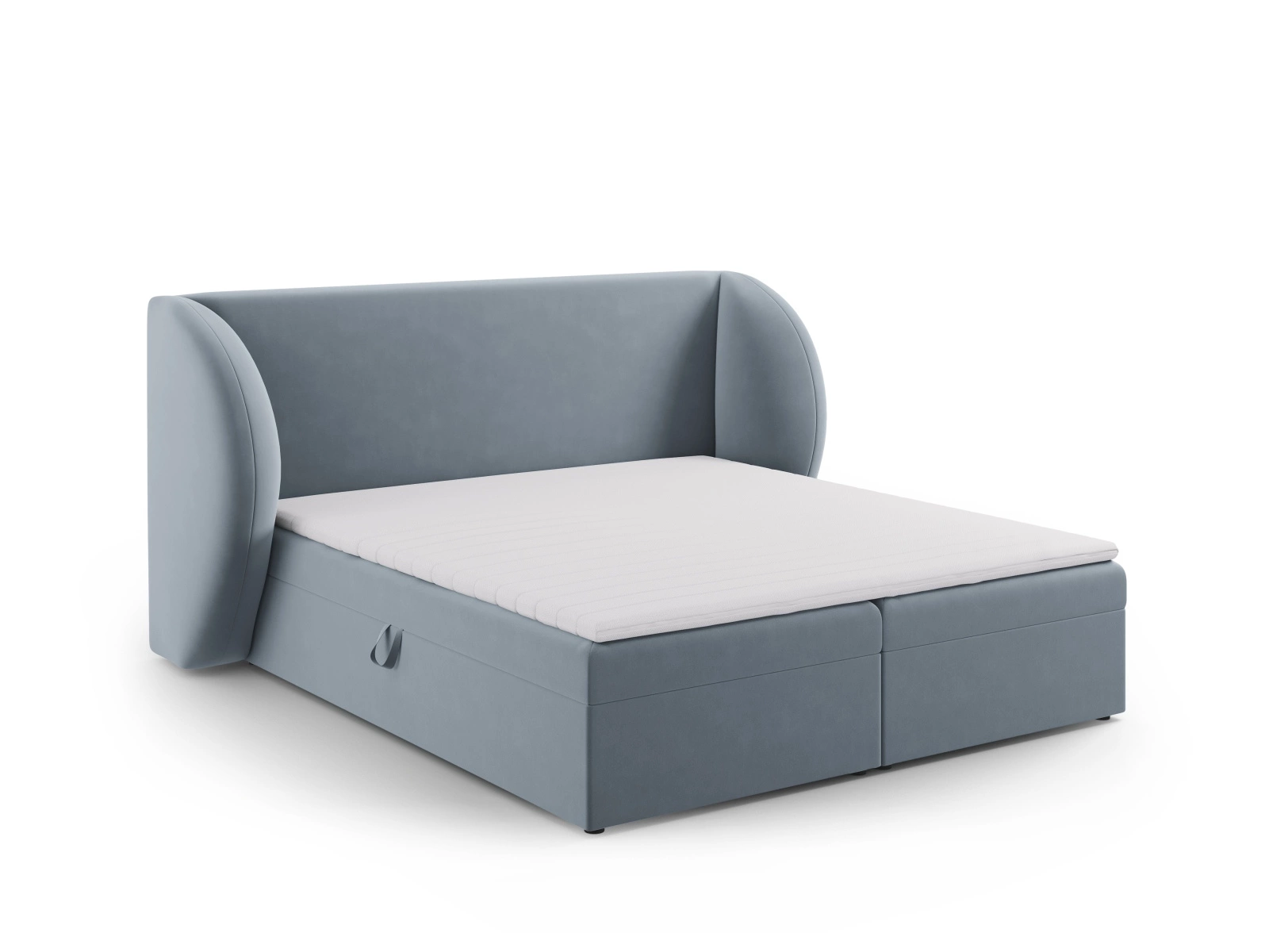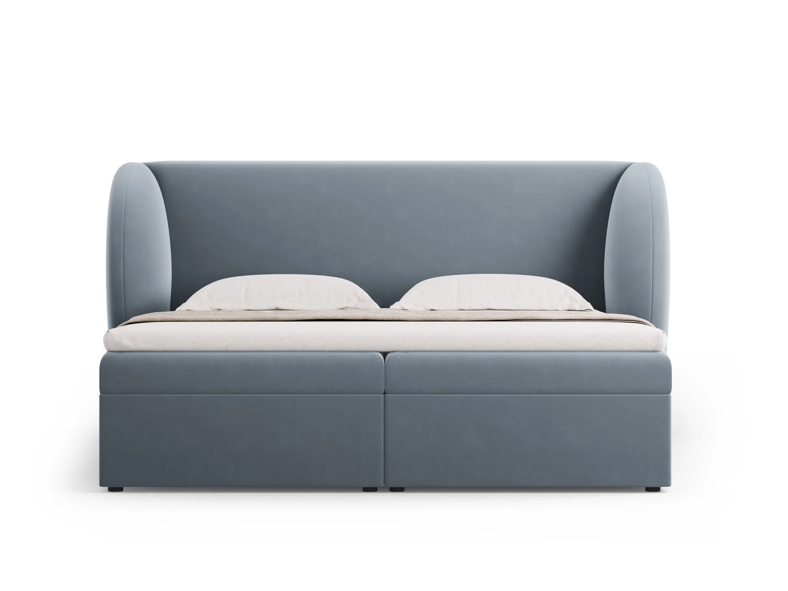 Postel Miley zaujme moderním tvarem a pečlivě vybranou barvou. Modrý samet vnáší do interiéru svěžest a jemnou eleganci, zatímco vysoké čelo s dekorativním charakterem se stává středobodem každého aranžmá. Díky měkkému čalounění postel nabízí nejen pohodlný spánek, ale také příjemné chvíle při čtení knihy nebo večerním sledování filmů.