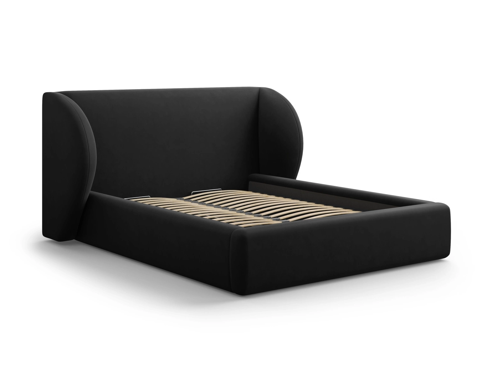 Čalouněná sametová postel Miley II s úložným prostorem 140x200 černá do ložnice