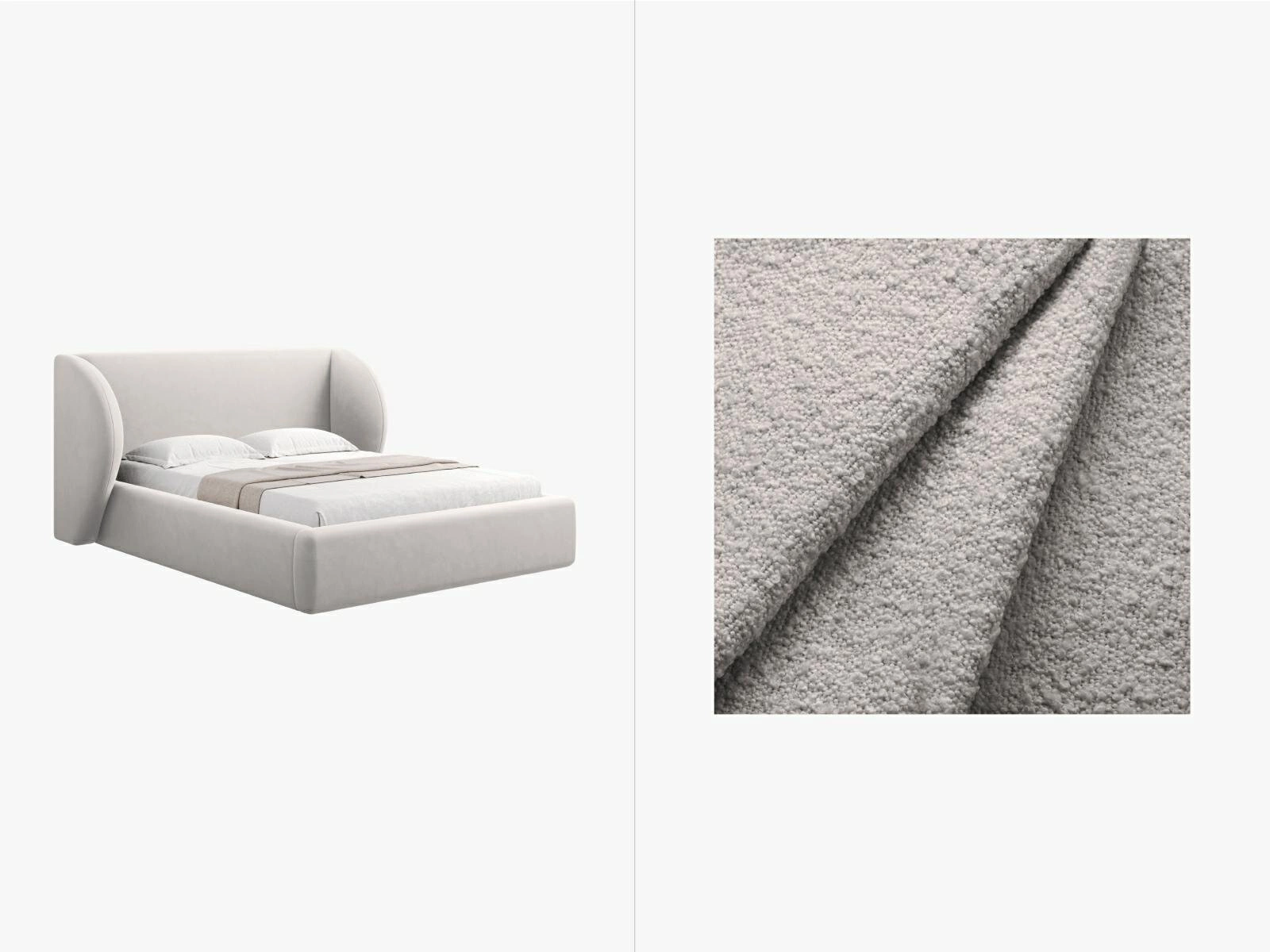 Postel Miley II vyniká minimalistickým designem a čalouněním z příjemné, měkké tkaniny boucle v univerzální šedé barvě. Skvěle zapadne do současných trendů bydlení – ať už do moderních interiérů, nebo pokojů s prvky glamour. Vysoké čelo postele nejen zdobí, ale poskytuje také pohodlnou oporu při čtení nebo večerním odpočinku.