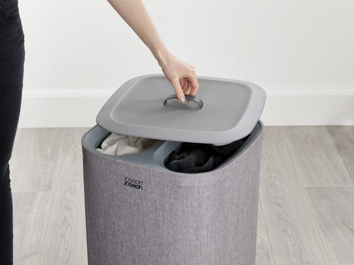 Koš na prádlo Tota 60l značky Joseph Joseph je moderní řešení pro koupelnu, šatnu nebo ložnici, které vám umožní pohodlně třídit prádlo a oblečení. Tento model vyniká dvoukomorovou konstrukcí, objemem 60 litrů a univerzální šedou barvou. Je vyroben z kombinace kvalitní bavlny a odolného plastu, což z něj dělá praktický třídící koš na prádlo ideální do moderních interiérů.