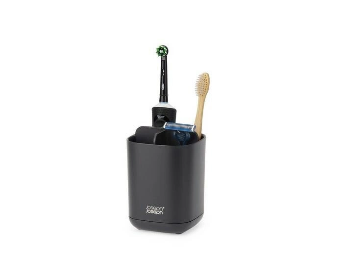 Joseph Joseph EasyStore je organizer na zubní kartáčky, který vám umožní snadno udržovat pořádek v okolí umyvadla. Díky několika přihrádkám pohodlně oddělíte manuální i elektrické kartáčky a tubu s pastou. Černá barva a obdélníkový tvar skvěle doplní moderní vybavení koupelny a dodají jí elegantní vzhled i osobitý styl. Odolný plast vhodný pro každodenní použití zaručuje dlouhou životnost a stále atraktivní vzhled organizéru.