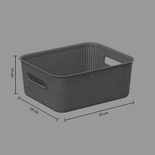 Tento úložný koš o rozměrech 34×28×14 cm je navržený pro každodenní použití. Jeho objem umožňuje pohodlně třídit drobnosti, prádlo, koupelnové doplňky, kosmetiku nebo dětské hračky. Frézované úchyty zajišťují snadné přenášení i plného koše, což je obzvlášť praktické při úklidu nebo praní. Materiál koše je pevný a odolný vůči vlhkosti, díky čemuž ho můžete používat také v koupelně, prádelně nebo na balkoně.