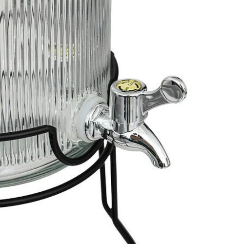 Tento skleněný dávkovač nápojů s kohoutkem promění váš stůl v centrum každého setkání – ideální volba jak na letní zahradní party, tak i pro rodinné oslavy doma. Díky velkému objemu 4 litrů připravíte dostatek nápoje pro všechny hosty a nemusíte neustále dolévat. Kovový stojan nejen zvedne nádobu pro snadné nalévání, ale také dodá celé sadě elegantní a moderní vzhled, který skvěle zapadne do každé kuchyně nebo na terasu.