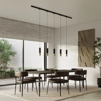 Kolejnicové svítidlo LOOPEZ v černo-zlaté barvě je součástí konfigurovatelného systému osvětlení kolejnic. Je kombinací klasického a moderního designu, který dokonale zapadá do současných designových trendů. Matná černá barva v kontrastu s leskem zlaté dodává interiéru elegantní charakter připomínající nejjemnější šperky, který podtrhne krásu každého domova. Tato lampa se bude dobře vyjímat v různých prostorách, od obývacího pokoje až po ložnici, a to díky své univerzálnosti a schopnosti osvětlit přesně tam, kde je to potřeba.