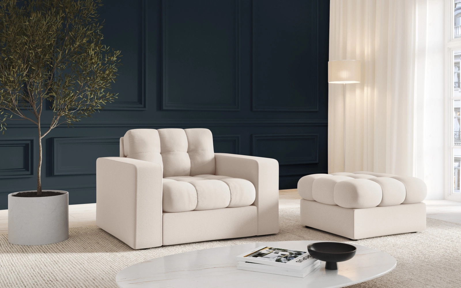Odpočinkové křeslo Justin od značky BESO LUX není jen dalším kusem nábytku do obýváku – je to sofistikovaný dekorativní prvek pro ty, kteří chtějí zvýraznit osobitý charakter svého domova. Sametová látka v béžovém tónu se skvěle doplňuje s černou základnou, což vytváří harmonii, která přitahuje pohledy. Zvolte Justin, pokud hledáte křeslo, které spojuje pohodlí, funkčnost a glamour styl v jedinečném provedení.