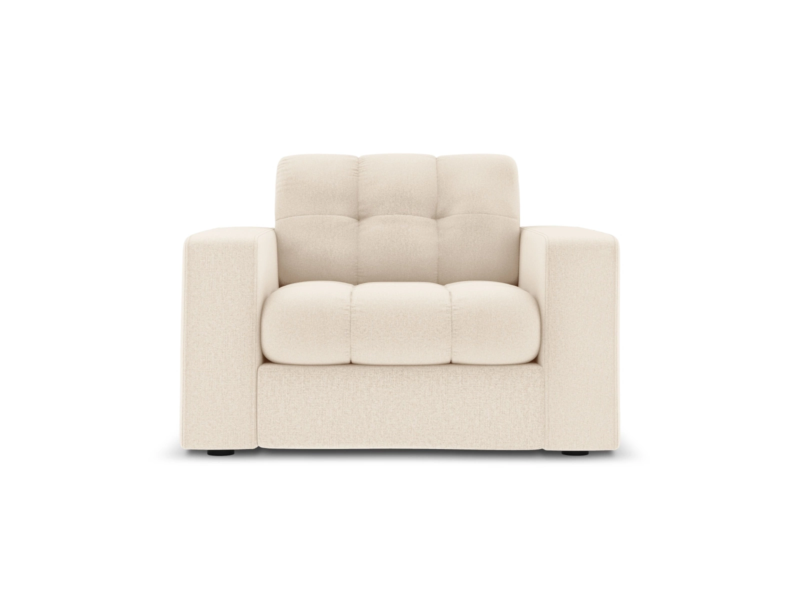 Křeslo Justin ve světle béžovém odstínu okamžitě zaujme jemným sametovým leskem a hlubokým prošíváním. Výjimečný charakter nábytku podtrhují tvarované područky a černé, štíhlé nohy, které dodávají konstrukci lehkost. Tento model perfektně zapadne jak do luxusního obýváku, stylové ložnice, tak i do elegantní pracovny, kde vytvoří útulné místo pro odpočinek, čtení nebo setkání s hosty.