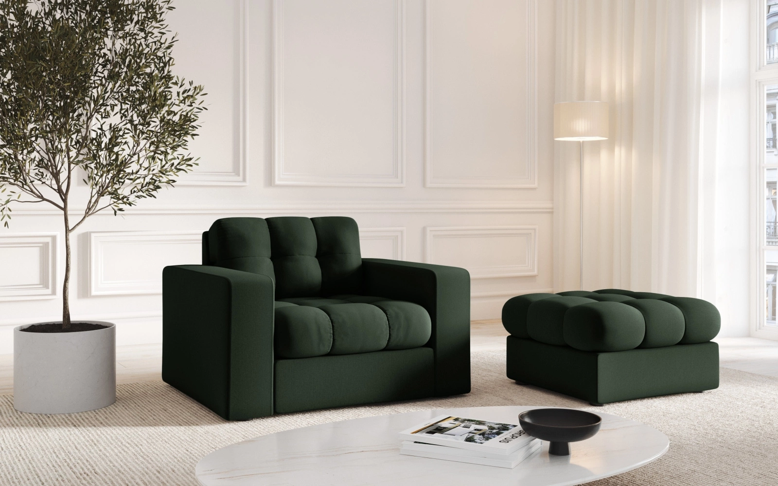 Pikovaná pufa Justin od značky BESO LUX je čtvercový čalouněný nábytek o rozměrech 60×60×38 cm, který spojuje moderní glamour styl s funkčností a elegancí. Precizně zpracovaná látkou Nea v hluboké tmavě zelené barvě zaručuje příjemný dotek a pohodlí při používání. Díky pevné konstrukci je ideálním řešením jako pufa do obývacího pokoje, ložnice nebo šatny – nejen na sezení, ale také jako dekorativní podnožka nebo praktický doplněk ke kosmetickému stolku.