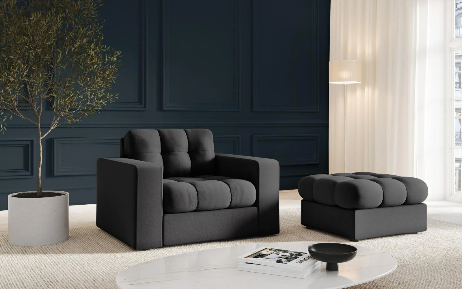 Čalouněný čtvercový taburet Justin značky BESO LUX je moderní a elegantní kus nábytku, který skvěle doplní obývací pokoj, ložnici, šatnu nebo předsíň. Vyniká pevnou konstrukcí, prostorným sedákem o rozměrech 60×60 cm a příjemnou látkou v hlubokém šedém odstínu. Měkké prošívání dodává taburetu nádech glamour stylu a zároveň zajišťuje mimořádné pohodlí při každodenním používání.