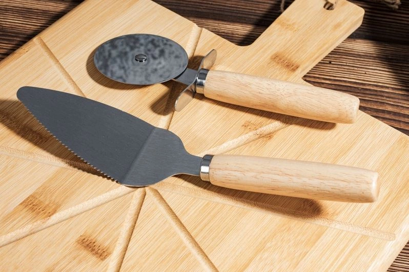 Přírodní barva sady na krájení pizzy jí dodává na eleganci a je vhodná do každého typu kuchyně. Stříbrné prvky nože a stěrky jí dodávají na modernosti a stylu. Sada je nejen praktická, ale také velmi estetická.