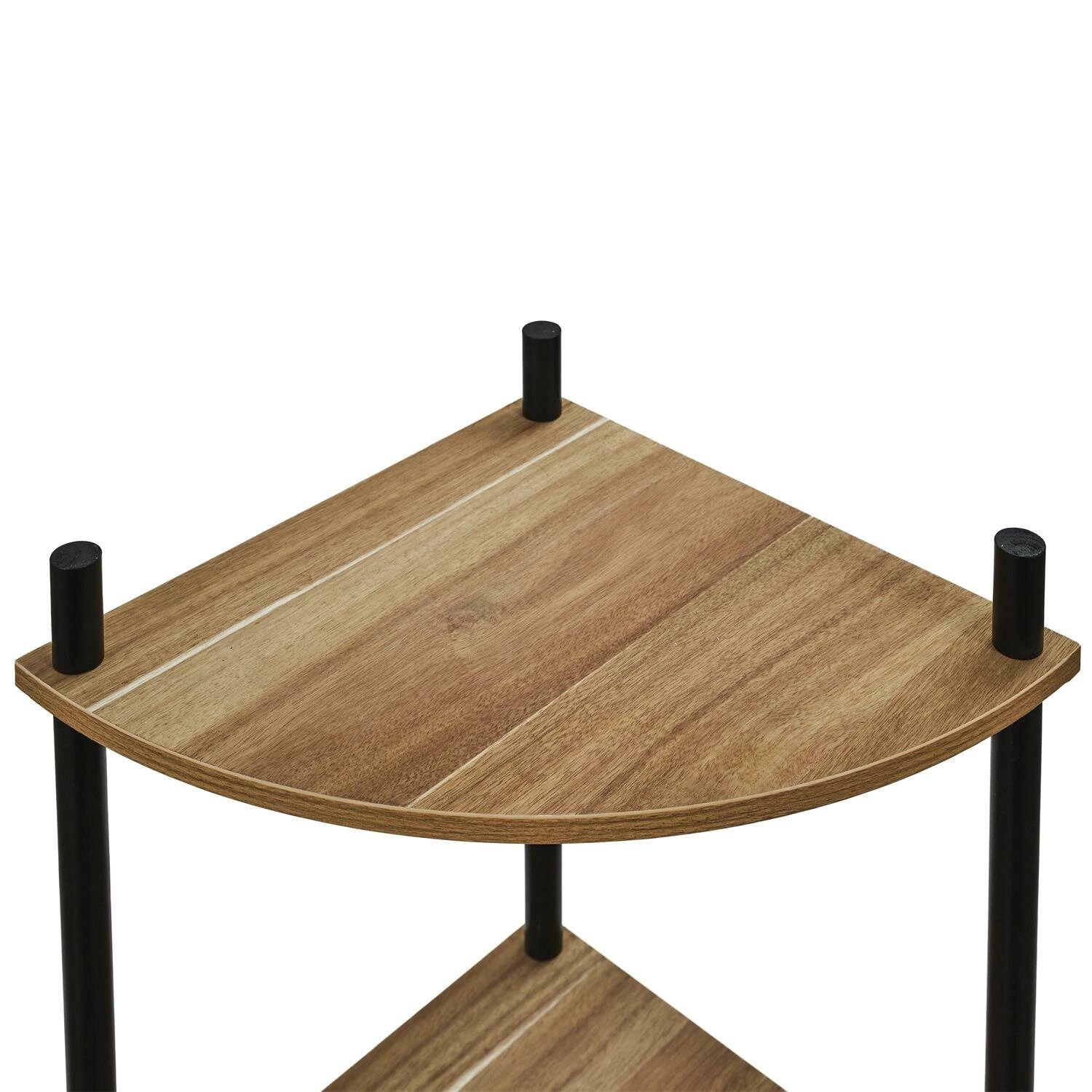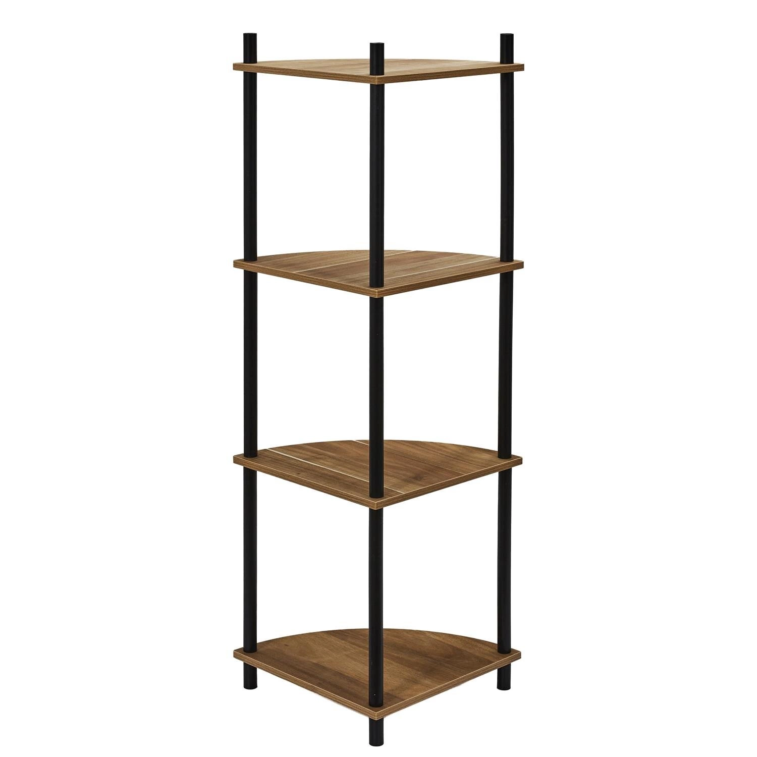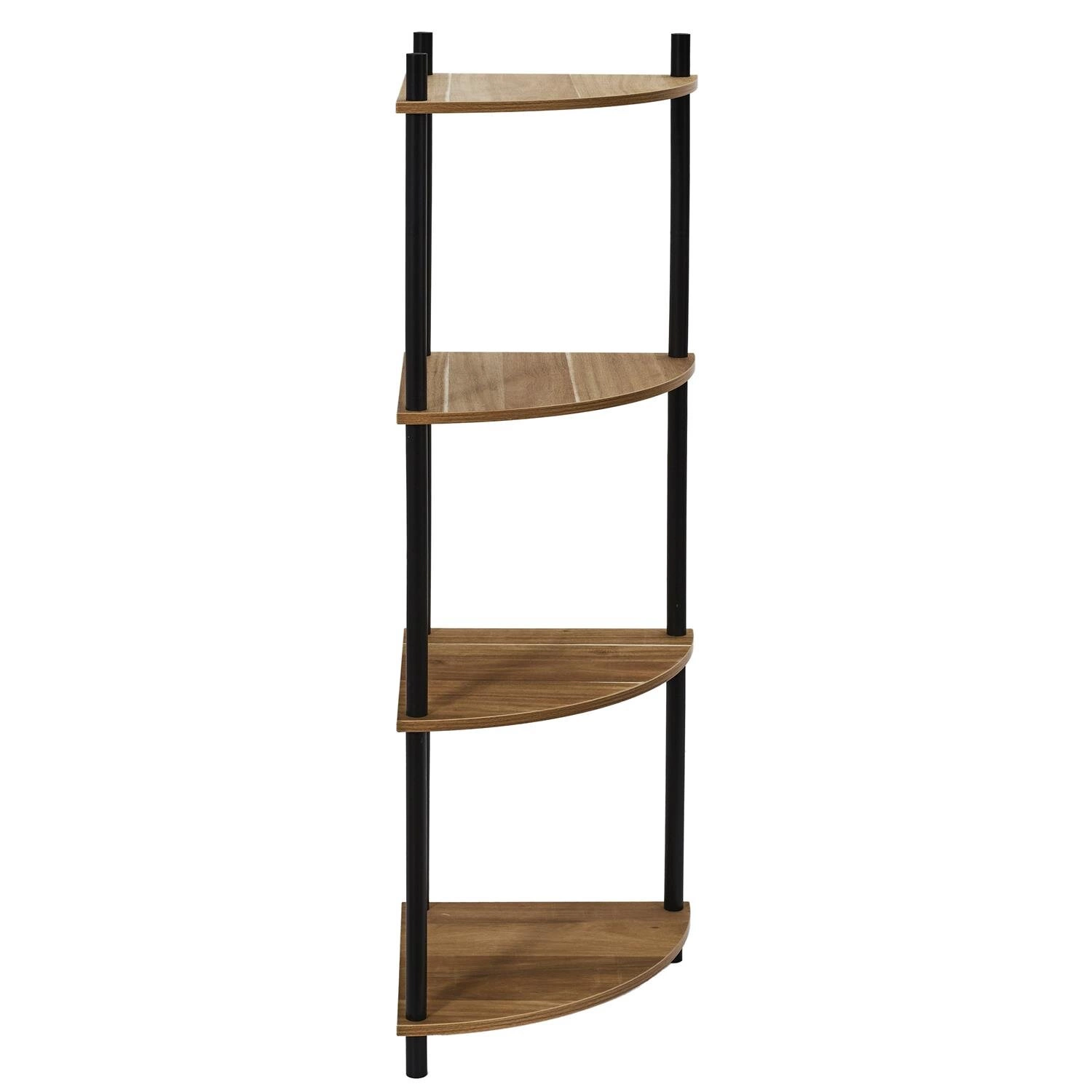 - Čtyřpatrový rohový regál Acacia je praktickým a stylovým řešením pro využití nevyužitých rohů v místnostech.