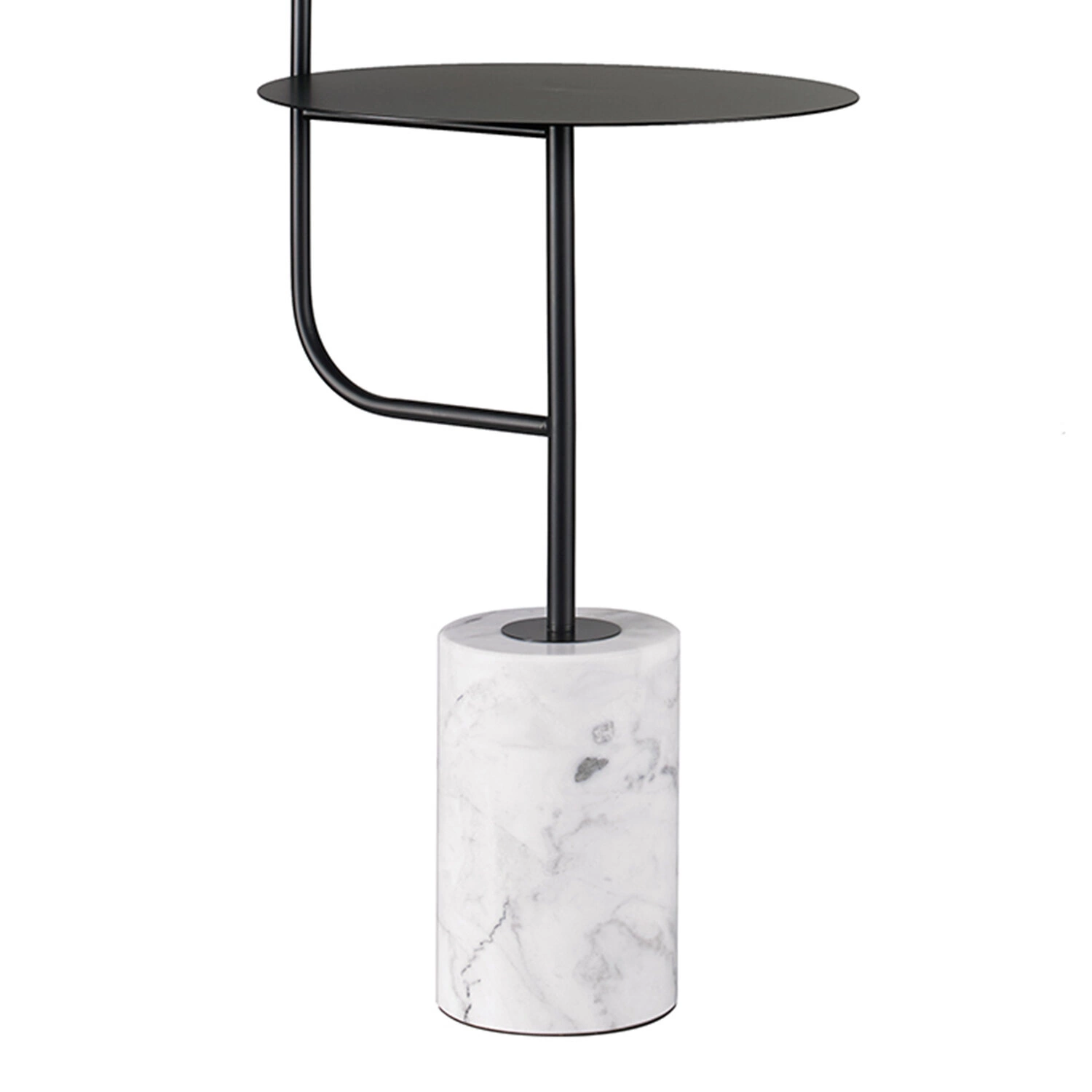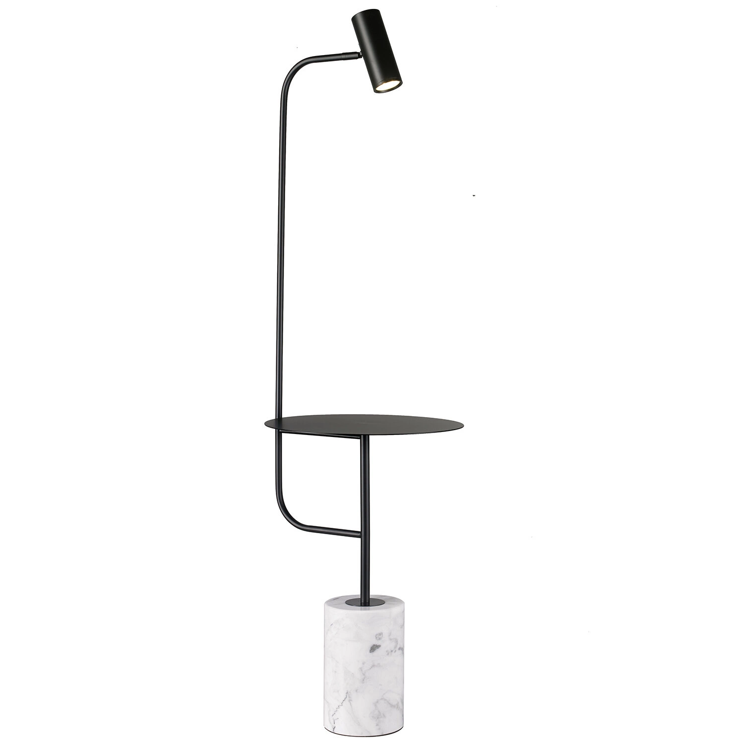 Stojací lampa do obýváku VINCENT černá s mramorovou základnou a stolkem LED 146 cm