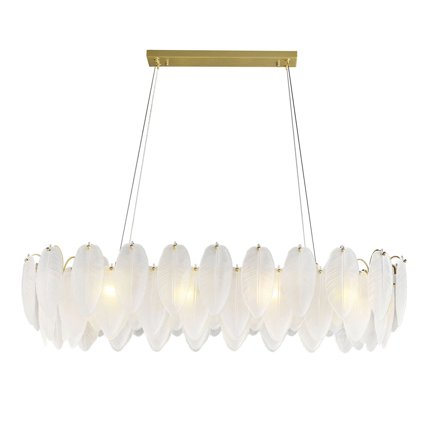 Visící lampa PIUMA LONG od značky Step into Design je skleněné, bílé svítidlo o délce 100 cm, které zaujme elegancí a jemným glamour stylem. Kombinace mléčně bílého skla se zlatými detaily vytváří jedinečný dekorativní efekt, díky čemuž je tento lustr nejen praktickým zdrojem světla, ale také originální ozdobou vašeho interiéru. Lampa je ideální jako osvětlení nad jídelní stůl, do obývacího pokoje, ložnice nebo kuchyně a vnese do vašeho domova nádech luxusu.