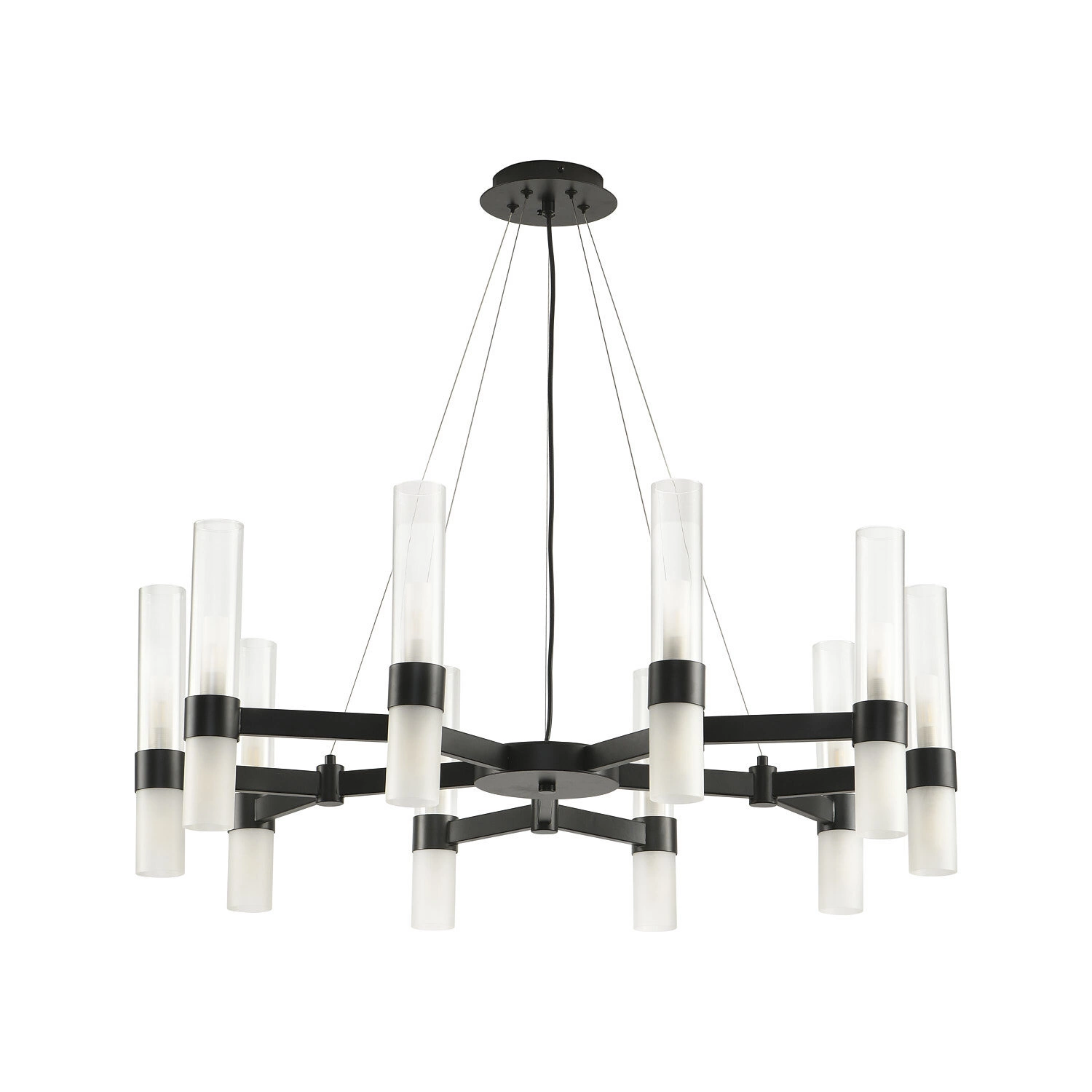Velká, rozkročená, elegantní závěsnálampa CANDELA-10 je vyrobena z černého kovu a 20 skleněnýchstínidel.