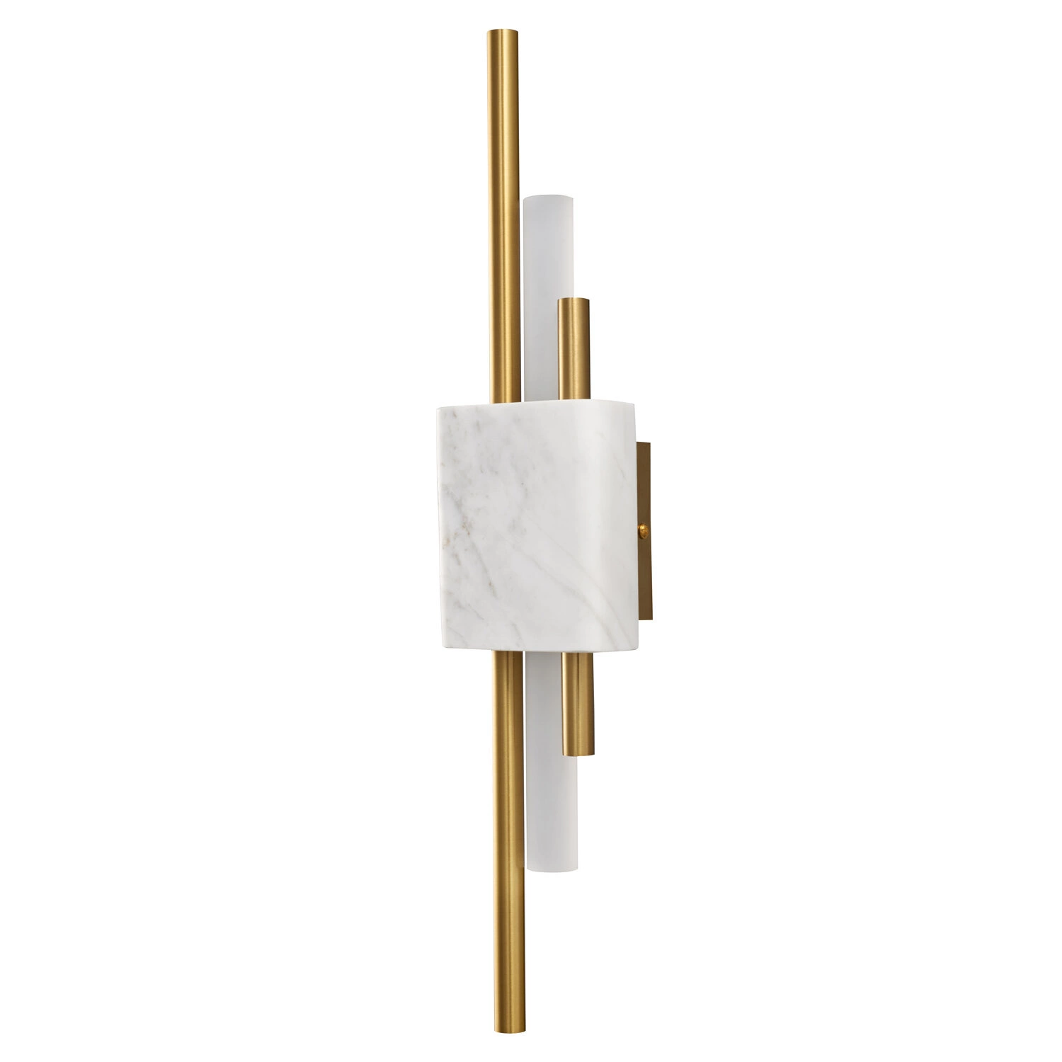 Nástěnné svítidlo ELLIE LED je ideální volbou pro milovníky luxusu v současném stylu. Kombinace přírodního bílého mramoru s matným zlatem vytváří působivý vizuální efekt, který podtrhne charakter každého elegantního interiéru. Skvěle poslouží jako dekorativní osvětlení nad postel do ložnice i jako nástěnná lampa do obýváku, kde zvýrazní strukturu stěn či vystavené obrazy.