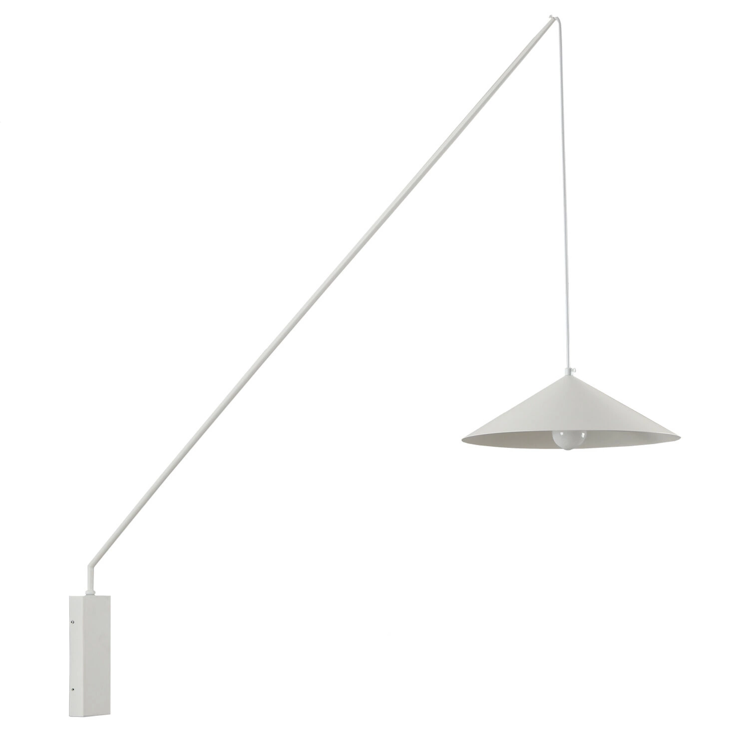 pr.Nástěnná lampa SWING má bílé stínidlo a bílý kabel.