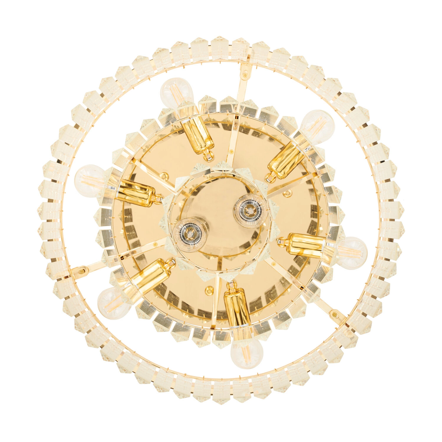 Stropní svítidlo SPLENDORE od Step into Design je výrazným prvkem v glamour stylu, který podtrhne jedinečný charakter vašeho obývacího pokoje nebo ložnice. Kulatý tvar s působivým průměrem 50 cm, elegantní zlatá povrchová úprava a transparentní stínidlo z dekorativního materiálu zajišťují, že tento plafon nejen efektivně osvětluje interiér, ale zároveň zaujme luxusním vzhledem. Díky 8 světelným zdrojům s paticí E14 je světlo rovnoměrně rozptýlené a vytváří příjemnou, atmosférickou náladu v místnosti.