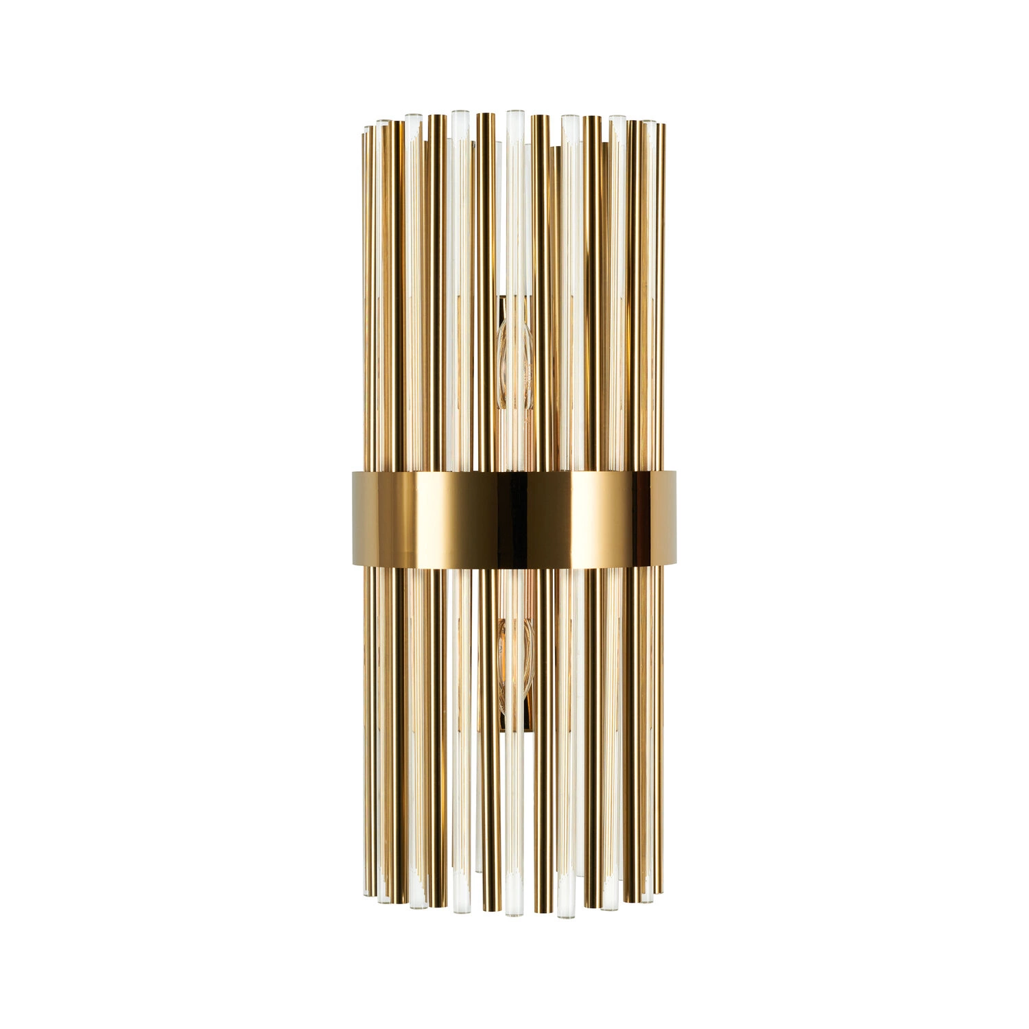 Nástěnné svítidlo LAGO je vyrobeno z kvalitního kovu a skla, což zajišťuje dlouhou životnost a snadnou údržbu. Zlaté provedení dělá z této lampy luxusní prvek v každém interiéru. Výška 50 cm umožňuje efektně osvětlit jak menší, tak větší prostory – bez rizika, že by působilo příliš dominantně.