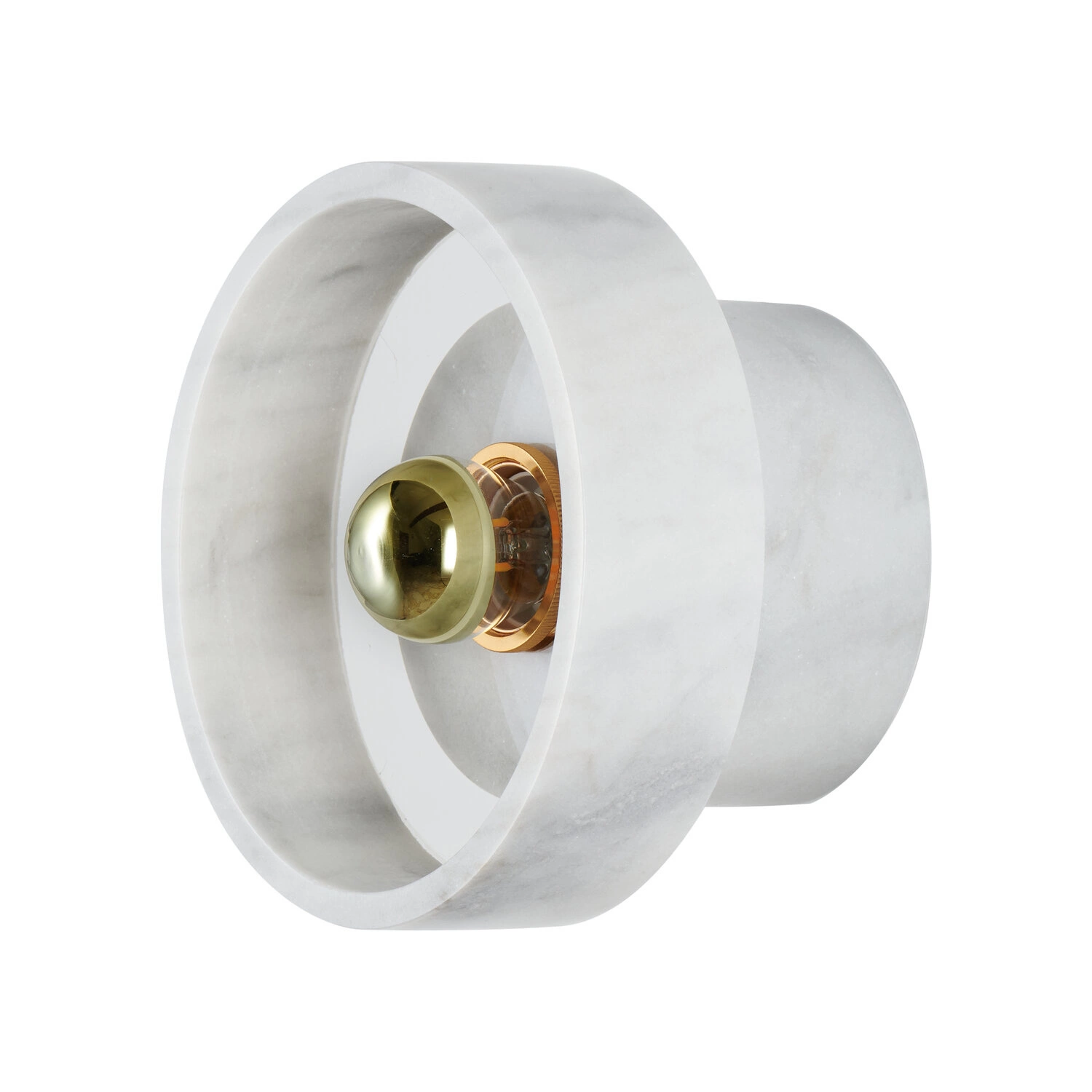 UNIVERSO je moderní nástěnné svítidlo, které spojuje nadčasovou krásu přírodního mramoru s výrazným leskem zlata. Kulatý stínidlo z bílého kamene vytváří jedinečný dekorativní prvek a podtrhuje osobitý styl každého interiéru. Ušlechtilé materiály okamžitě upoutají pozornost a nástěnná lampa UNIVERSO se skvěle hodí jak do glamour interiérů, tak do minimalisticky laděných prostor.