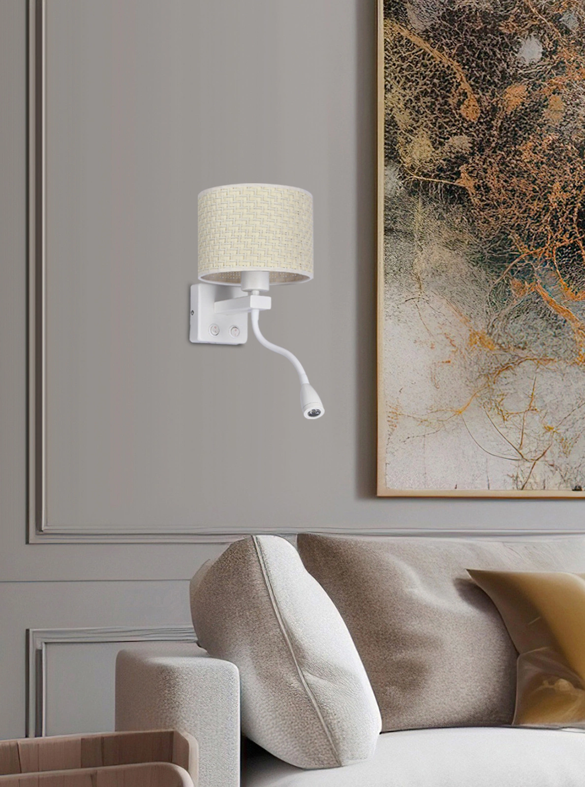 Nástěnné svítidlo Polo bylo navrženo pro milovníky moderních interiérů, kteří ocení teplé, domácí osvětlení. Béžové textilní stínidlo dodává lampě jemnost a efektivně rozptyluje světlo, čímž vytváří příjemnou, relaxační atmosféru – ideální pro večerní odpočinek v ložnici nebo klidné chvíle v obývacím pokoji. Díky univerzálnímu designu se nástěnná lampa Polo harmonicky začlení jak do minimalistických, tak do útulnějších prostor.