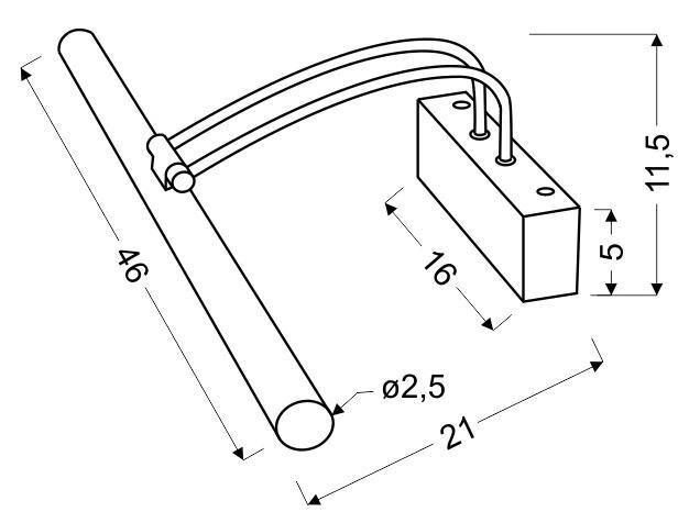 - Výška 11,5 cm, šířka 46 cm, hloubka 21 cm – ideální rozměry pro instalaci nad zrcadlo, do obývacího pokoje nebo ložnice