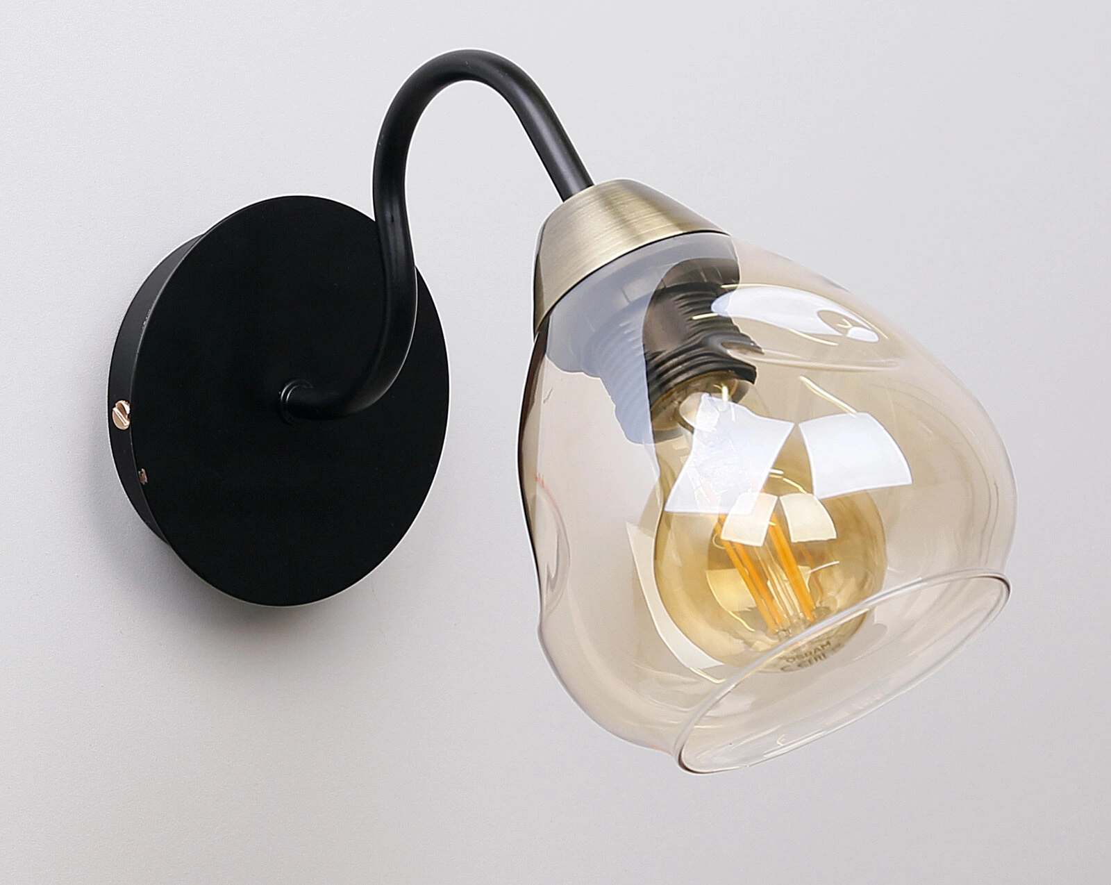 Unica je volbou pro ty, kdo ocení jemnou eleganci a současný styl. Harmonická kombinace černé a zlaté dodá místnosti exkluzivní nádech, zatímco lehký tvar svítidla nepřebíjí celkový dojem. Skleněné stínidlo rozptyluje světlo a vytváří příjemnou, útulnou atmosféru – ideální k večernímu odpočinku nebo jemnému nasvícení prostoru. Toto moderní nástěnné svítidlo se skvěle hodí jak do minimalistického obývacího pokoje, tak do útulné ložnice.