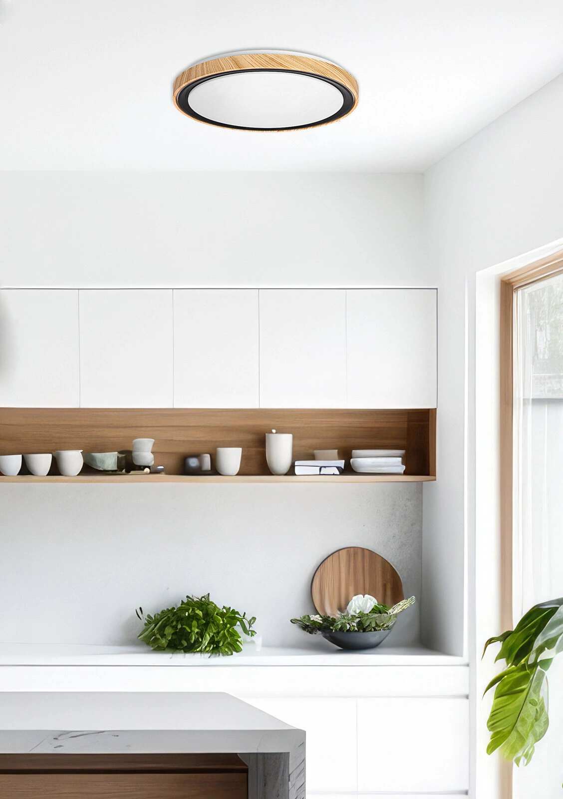 Pokud hledáte moderní stropní svítidlo, které dodá vašemu interiéru eleganci, je stropní svítidlo Aflo vynikající volbou. Toto stropní svítidlo vyrobené v kombinaci přírodní barvy dřeva a moderního černého provedení je stylovým doplňkem každé místnosti. Zintesk.owed 24W LED osvětlení umožňuje nastavit barvu světla, od teplé, útulné až po studenou bílou, což vám umožní vytvořit dokonalou atmosféru. Bílé stínidlo s pr.ednicí 38 cm poskytuje rovnoměrné osvětlení, ideální do obývacího pokoje, ložnice nebo kanceláře.