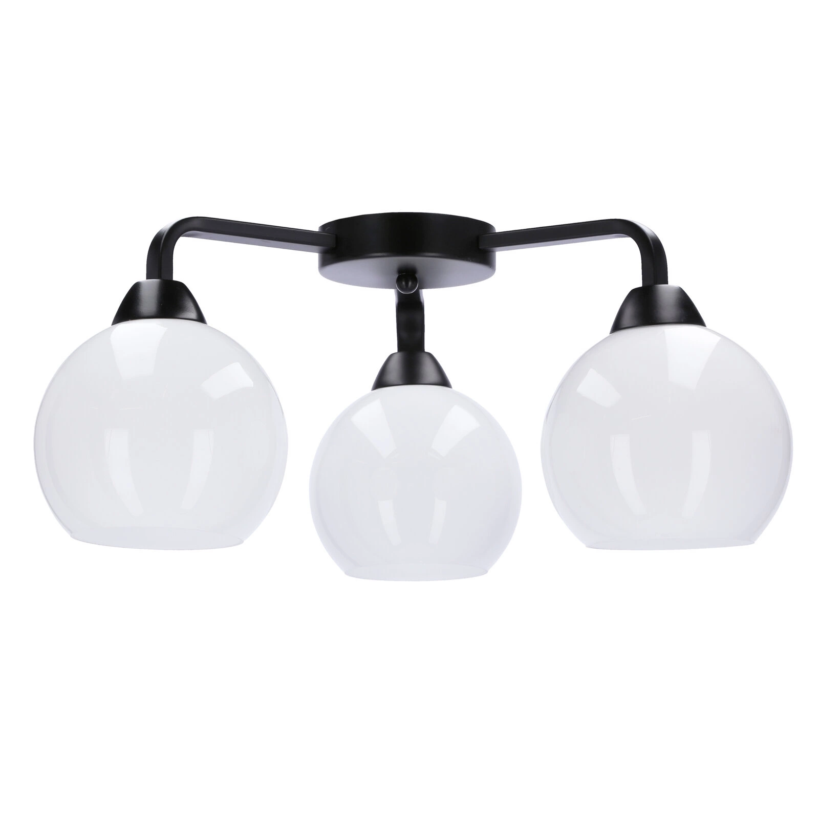 Moderní stropní svítidlo Caldera od značky Candellux Lighting je stylové osvětlení se třemi kulovitými skleněnými stínidly, umístěnými na černé kovové konstrukci. Průměr 57 cm a výška 22 cm zaručují, že tento lustr perfektně vynikne v obývacím pokoji, kuchyni i nad jídelním stolem. Lampa spojuje moderní design s funkčností a poskytuje rozptýlené, příjemné světlo pro celou rodinu.