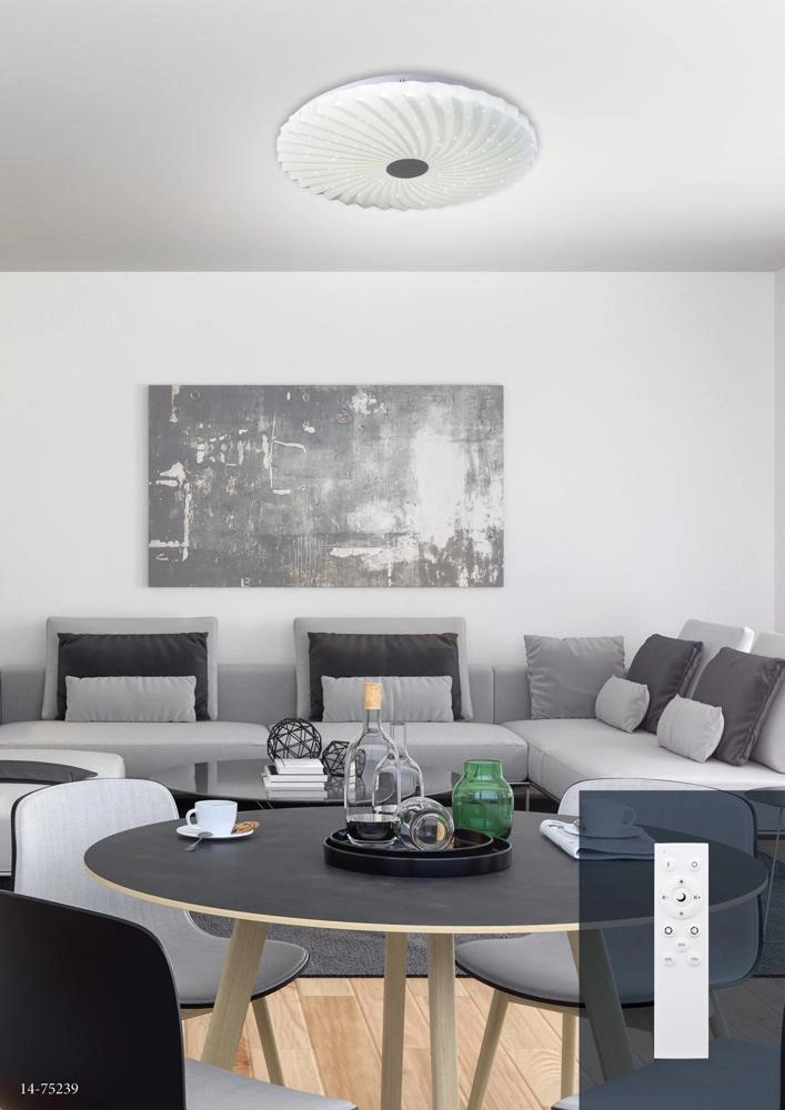 S pomocí přiloženého dálkového ovladače snadno přizpůsobíte barvu i intenzitu světla každé situaci – od jasného, povzbuzujícího osvětlení pro práci až po teplé, relaxační světlo pro večerní odpočinek. Možnost regulace barvy světla (4000K) a funkce stmívání zajišťují, že LED plafon Calipso vám pomůže vytvořit pohodlný prostor přesně podle vašich každodenních potřeb.