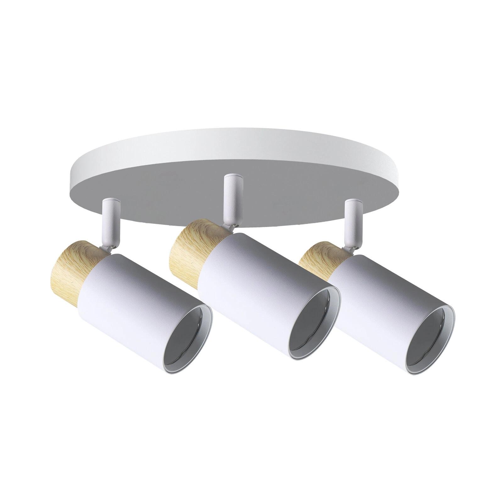 Stropní svítidlo Claro od značky Candellux Lighting je moderním řešením osvětlení, které spojuje elegantní bílou barvu, přírodní dřevěné prvky a univerzální tvar. Tento kulatý plafon o průměru 32 cm a výšce 14 cm je vybaven třemi nezávisle nastavitelnými světelnými zdroji GU10, díky nimž snadno nasměrujete světlo přesně tam, kde ho nejvíce potřebujete. Kombinace oceli a dřeva zajišťuje, že stropní svítidlo Claro skvěle doplní interiér obývacího pokoje, kuchyně, ložnice nebo moderní jídelny.