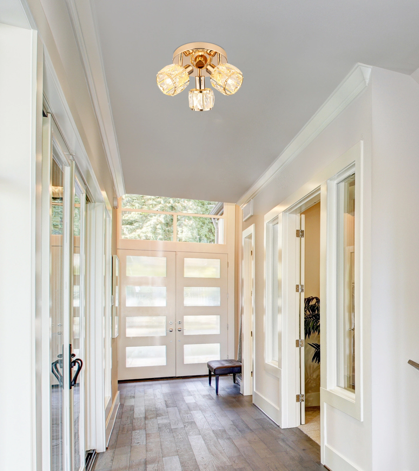 - Zlatý, křišťálový kulatý plafon – luxusní vzhled, který změní každý interiér