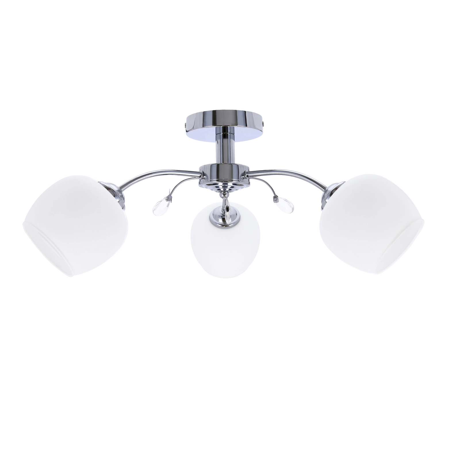 Stropní svítidlo Estar od značky Candellux Lighting je kombinací moderního stylu, chromovaného provedení a efektních křišťálků, které dodávají lampě jedinečný lesk. Tříbodová konstrukce na pevném kovovém rámu zajišťuje rovnoměrné osvětlení obývacího pokoje, jídelny nebo kuchyně. Bílé stínidla s jemným zdobením decentně rozptylují světlo a vytvářejí útulnou atmosféru v každém interiéru.