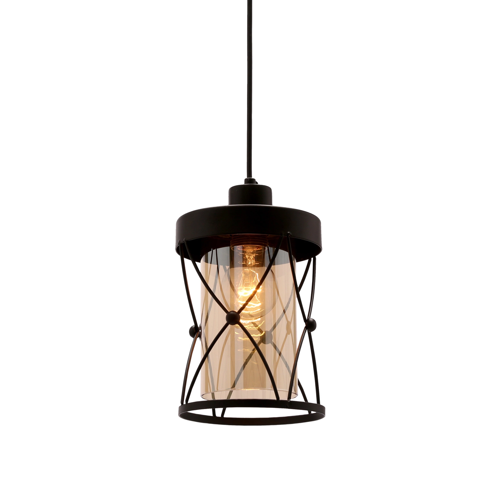 Závěsné svítidlo Agar černé moderní s jantarovým stínidlem do obýváku a kuchyně