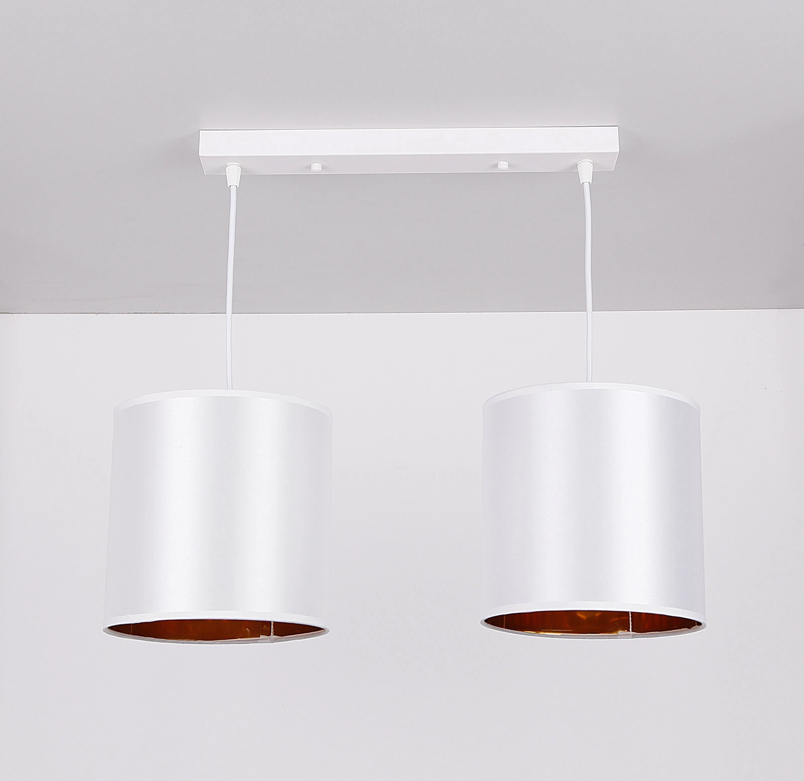 - Textilní bílý stínidlo – příjemné, rozptýlené světlo a elegantní vzhled