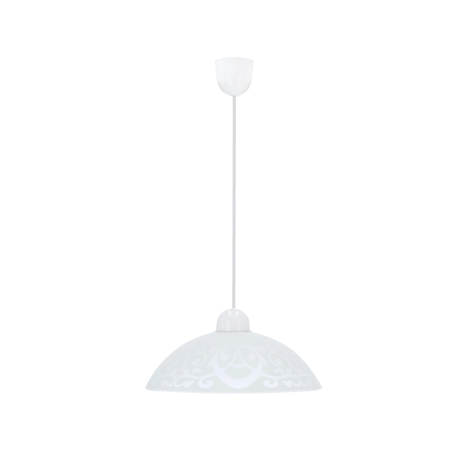 Bílé závěsné svítidlo Bronte s ozdobným vzorem bylo navrženo pro interiéry, které dávají přednost klasické harmonii a lehkosti. Skleněné stínidlo nejen krásně rozptyluje světlo a vytváří útulnou atmosféru, ale také stylově podtrhuje vzhled obývacího pokoje, jídelny nebo ložnice. Univerzální bílá barva a kulatý tvar zajistí, že lampa skvěle zapadne jak do moderního, tak tradičního interiéru.
